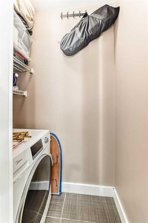 Freshly painted and thoughtfully updated, this bright condo sits in a well-maintained building with fantastic downtown views from a sunny south-facing balcony. The open floor plan, modern kitchen with granite countertops, white cabinetry, and stainless appliances (including a one-year-old Bosch dishwasher) makes entertaining and daily living a pleasure. The living area is bright with laminate flooring running throughout. Large patio doors lead to the balcony for easy indoor- outdoor living. The spacious primary bedroom features a large closet and downtown view. The 4 piece bathroom boasts a granite vanity and a touch of personality with funky wallpaper. The Bosch washer is a year old and there’s the option to install a dryer. There is also a common laundry room in the building. The unit includes secure bike storage and an assigned parking stall. Roof replacement is scheduled for summer 2026. Amazing location steps from the LRT, Safeway, Kensington pubs and restaurants, SAIT, University of the Arts, and Jubilee, with easy access to downtown, U of C, Foothills and Children’s Hospital campuses. Bike lanes, walking paths, plus off-leash dog parks, are nearby for an active urban lifestyle.