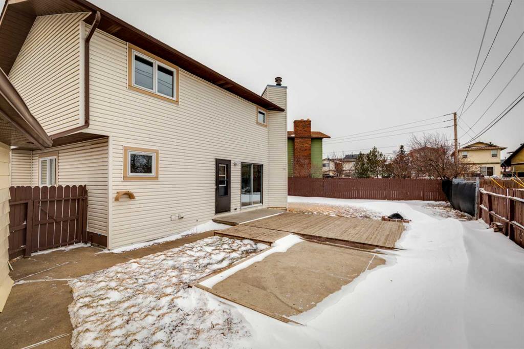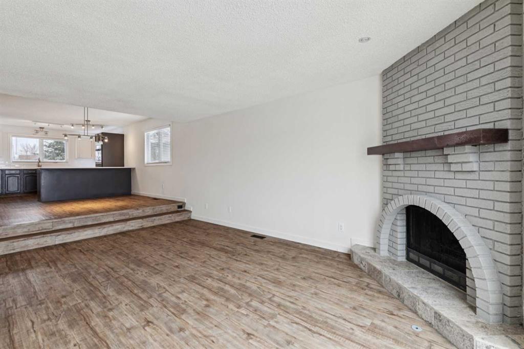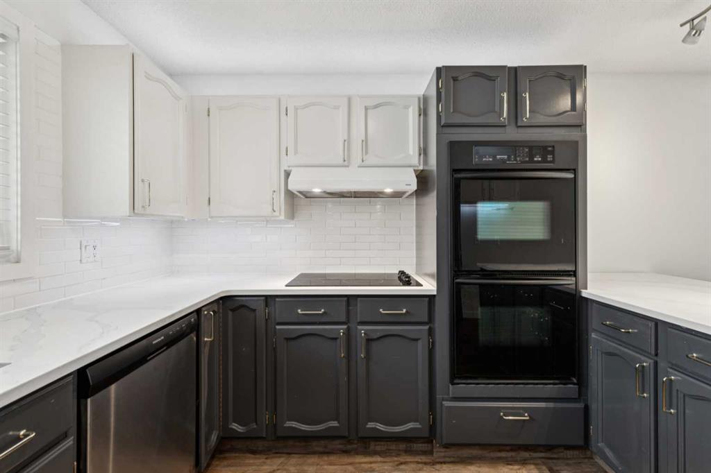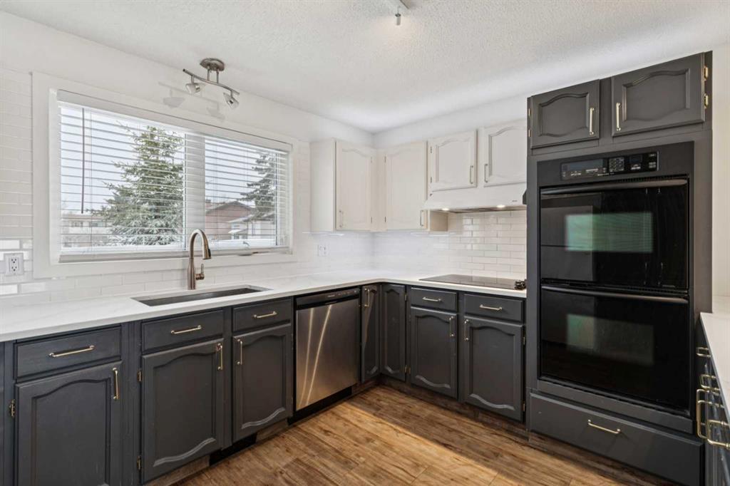 As you step into the home, you are greeted by a functional front entryway featuring a convenient closet for easy jacket and shoe storage. The foyer opens immediately into an expansive living room, where a large bay window floods the space with an abundance of natural light. The main floor transitions seamlessly into the open-concept dining area and kitchen, tied together by durable, vinyl-plank flooring. The modernized kitchen is a chef’s delight, showcasing a stylish two-toned cabinet design—crisp white uppers paired with deep blue lowers. This space is fully equipped with an electric cooktop, built-in double oven, and a sleek white refrigerator, all framed by elegant white quartz countertops and a subway tile backsplash. A unique multi-level design leads down to an additional living space, anchored by a classic brick-surround fireplace and sliding glass doors that provide direct access to the rear deck. Moving to the upper level, a classic white spindle staircase leads to the private bedrooms. The primary suite is notably spacious, easily accommodating a king-sized bed and complimented by a 3 pc ensuite, while the additional bedrooms feature large windows and updated closet doors, making them perfect for children’s rooms or a home office. These rooms share a clean, modern 4-piece bathroom with updated fixtures. The lower level offers even more versatility with a finished basement featuring plush carpeting, perfect for a media room or home gym. You'll also find a secondary room offering great flexibility for a home office or guest space. Outside, the property features a fully fenced backyard with a spacious deck, ideal for summer gatherings, leading to the detached garage for secure parking and extra storage. Benefits continue with a back gated fence perfect for RV storage! Located in the heart of the established community of Temple, this home is just minutes away from everything a family needs. You are within walking distance to multiple schools, including Annie Foote and Father Scollen, as well as local parks and the Temple Community Association. With quick access to Stoney Trail and McKnight Blvd, plus the nearby Village Square Leisure Centre and Sunridge Mall, this location perfectly balances quiet residential living with city convenience.