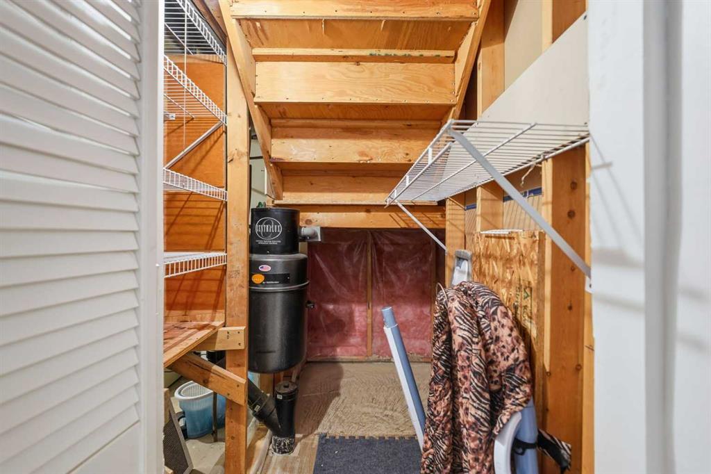 Reverse osmosis system (under kitchen sink), shelving and desk in basement office along the front of the house, shelving in the garage, shed, doghouse, wood frame base for hot tub, garden hose(s), shovel(s), wifi booster(s), doorbell camera, window AC unit, window coverings, TV and wall mount in upstairs bedroom, and white shelving unit in the utility room. |