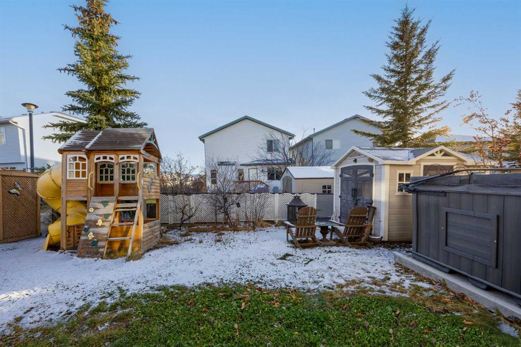 This home also comes with a number of valuable inclusions, such as a swim spa, greenhouse, firepit, shed, and a charming playhouse, adding both functionality and enjoyment to the property. Numerous upgrades have already been completed, including a new roof (2023), 60-gallon hot water tank (2022), Trimlights on the front and side (2024), motorized main-floor blinds (2025), and a new front window blind (2025). Residents also enjoy exclusive access to the Tuscany Club, offering recreation, programs, and community amenities for the whole family.