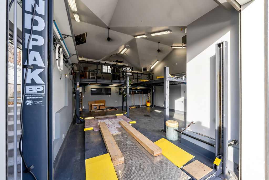 THE OVERSIZED MECHANIC’S DREAM GARAGE IS TRULY ONE-OF-A-KIND! featuring a mezzanine and massive 9'x10' oversized doors large enough to accommodate an RV plus a fully outfitted workspace complete with compressed air lines, fixed machinery & equipment, a 9000 LB 4-POST LIFT, 14,000 LB 4-POST LIFT, and an 80-GALLON AIR COMPRESSOR. With the installed lifts, UP TO 4 VEHICLES CAN BE PARKED INSIDE, an exceptional opportunity for mechanics, collectors, hobbyists, or anyone needing serious functional space.