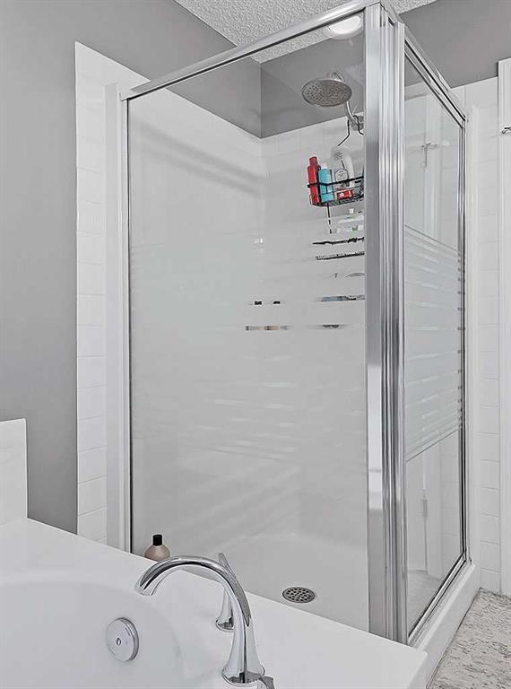 The upper level offers two well-sized bedrooms, each with its own walk-in closet. A beautifully designed 5-piece bathroom separates the bedrooms and includes double sinks, a soaker tub, and a separate shower.