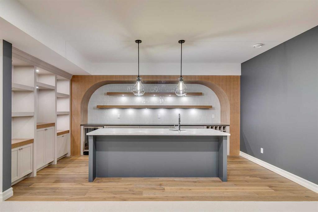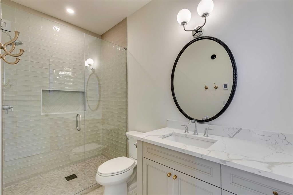 Sen Homes presents a stunning new estate home in the prestigious community of Upper Mount Royal, crafted to the highest standards and ready for occupancy. WITH 4,383 sq.ft. of meticulously developed living space, this home features three spacious upstairs bedrooms, each with walk-in closets and luxurious en-suites equipped with heated floors; the primary suite includes a steam shower and dedicated makeup counter. The main floor is thoughtfully designed with a custom mudroom, butler’s pantry, private office, formal dining room, and an open-concept kitchen and living area. White oak hardwood flooring spans the main and upper levels, with hardwood accents continuing into the basement. Premium finishes include solid core doors and extensive custom millwork such as office built-ins and a coffee station in the primary suite. The fully developed lower level boasts a gym, an additional bedroom, a full bathroom, smart strand silk carpet and a generous recreation area complete with a stunning wet bar. Noteworthy highlights include European-style black-framed tilt-and-turn windows, in-floor heating in the basement, elegant architectural arches, updated hardware throughout, and more. Situated on a quiet, tree-lined street with a sunny west-facing backyard, the outdoor space includes a large deck with two gas lines (for BBQ and fire table/heater) and an oversized double garage that is insulated, drywalled, painted, & heated—this home is the epitome of luxury and function in one of Calgary’s most sought-after neighborhoods.