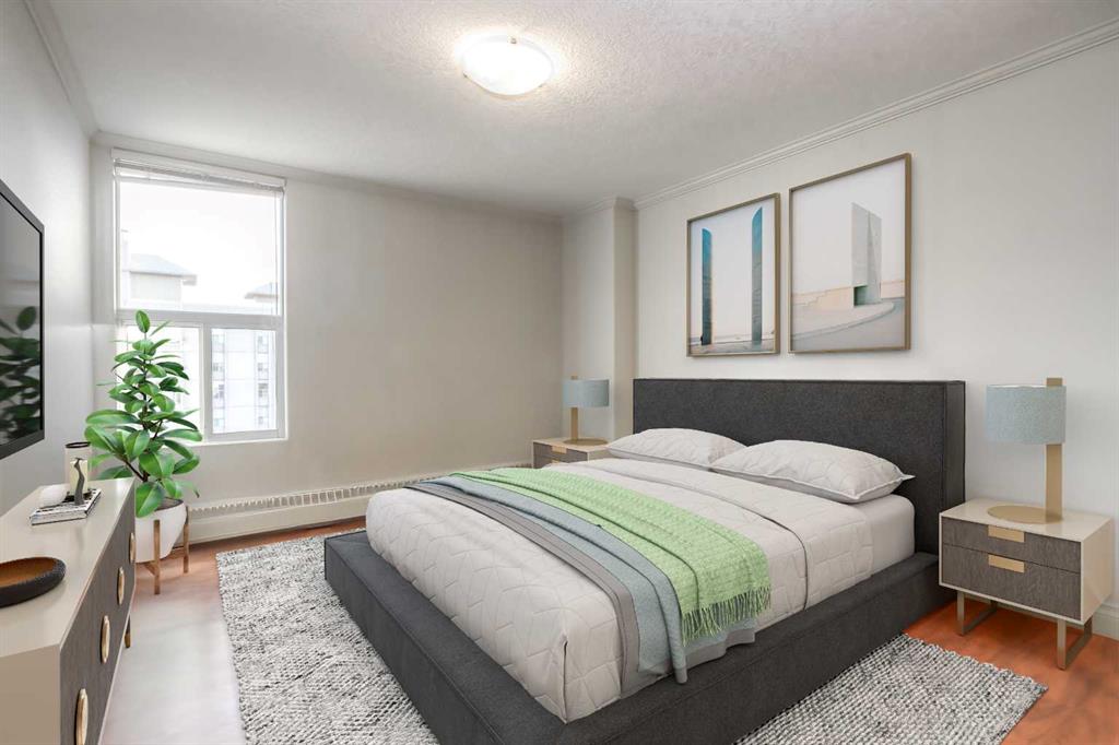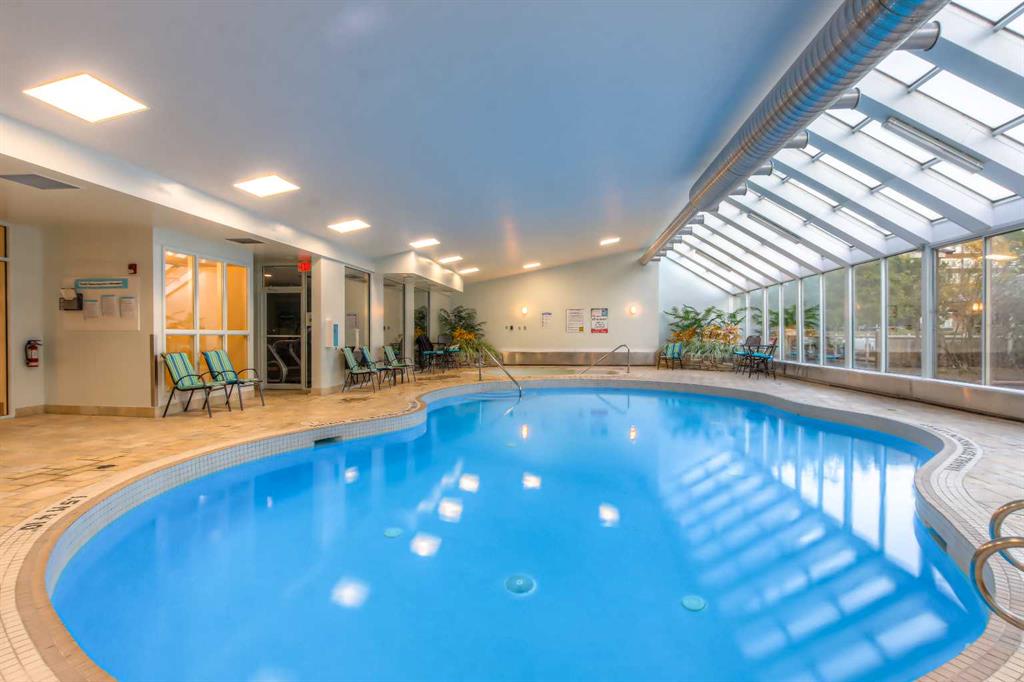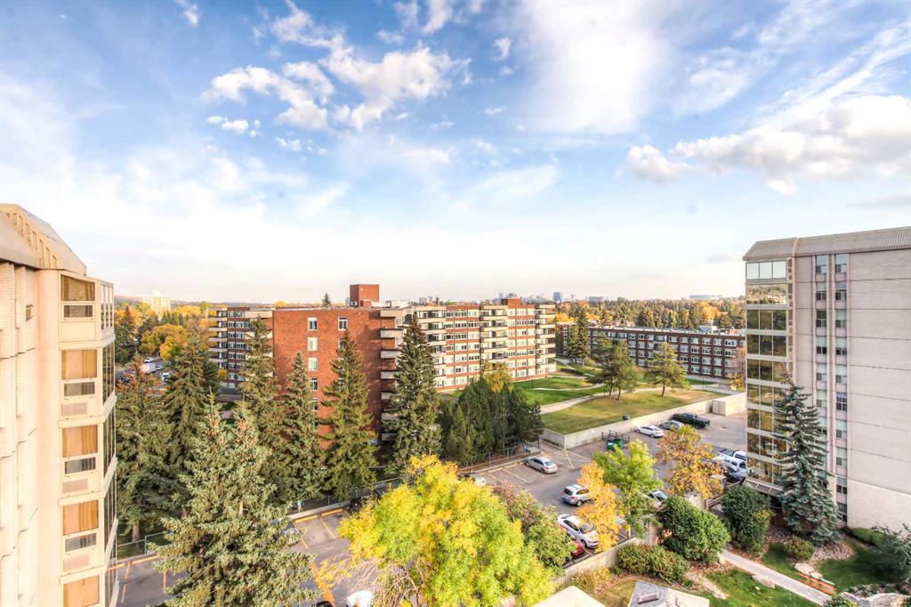 Penthouse condominium home in the lovely Varsity Towers. This top floor unit provides a beautiful living space and expansive distant views to the south and west that include the mountains, an overlook of Varsity, and the Bow River valley. Excellent floor plan that provides an open plan and comfortable divided spaces. A Large kitchen with granite counters and quality built-in appliances connects to a lovely sunroom with views to the south and west. The generous living room is warmed by a gas fireplace. Apart from the living spaces, a hallway leads to 2 large bedrooms and an office (easy conversion to a 3rd bedroom if desired). The primary bedroom is very generous and has a fireplace, a walk-in closet, a large 5pc ensuite bath that includes a steam shower, and a south facing open patio space. There is a seprate laundry room and insuite storage off the main hallway and the 4pc main bathroom. The home is excellent! Abundant amenities: Roof top patio (stairway directly outside the unit door) for enjoying the 360 view, suning, or a bbq., a beautiful indoor pool, exceptional private garden spaces, a well equipped gym, theatre/games room, libray/study room, warm lobby spaces, car wash bay. In addition, this property comes with 2 indoor parking spaces (the 1st is a close to the elevator as possible) and a large private storage room (9ftx5ft). This home and the property together offers excellent value by every measure. Great lifestyle!