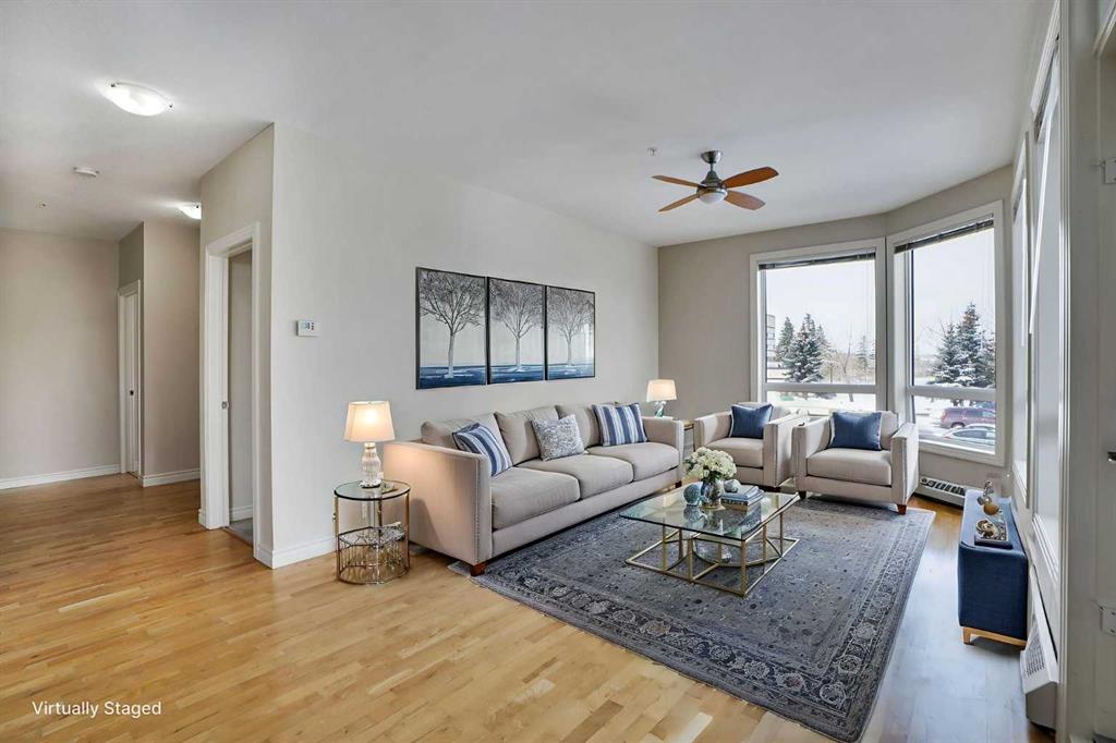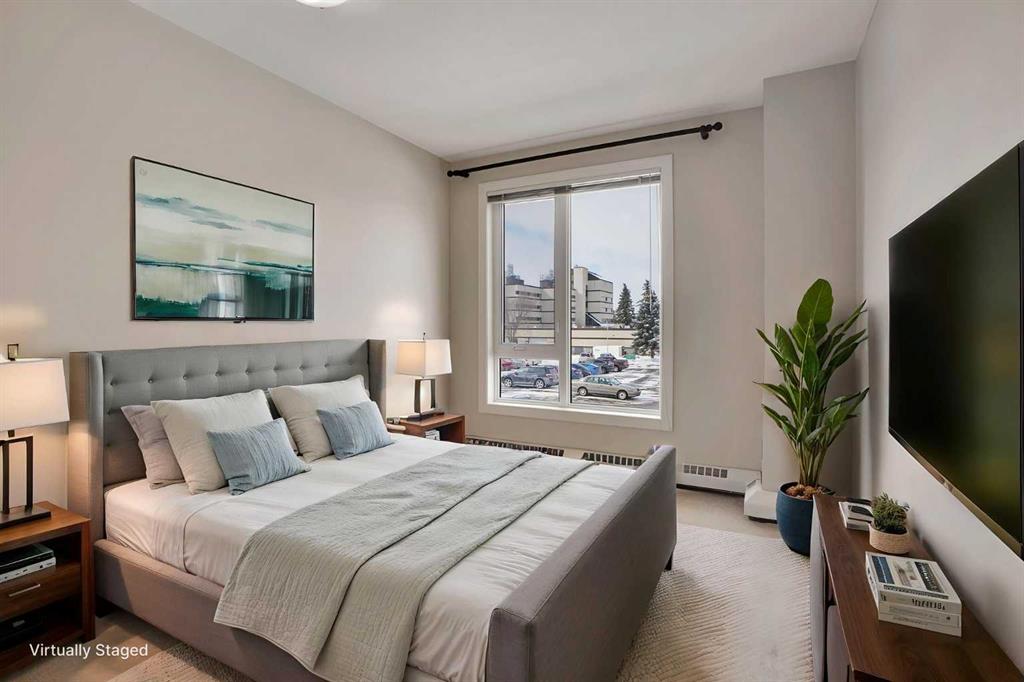 It’s rare to see this 2 Bedrooms & 2 Baths end Unit just across street to the University of Calgary! It is perfectly located in the Second Floor End Unit Building and steps away to the University Research Park, Foothills & Alberta Children’s Hospitals, Brentwood & Market Mall, LRT Station provides quick access to downtown Etc. Open and very bright functional floor plan with 9 Ft Ceilings, The PRIMARY BEDROOMS includes a walk- through closet, a 3-piece ENSUITE and Full-size washer/dryer. It also has a good-sized second bedroom and a 4-piece main bathroom. The open concept kitchen connects the dining area and the spacious living area where you can enjoy the views. Large balcony with a Gas BBQ Hook-UP. Recent Upgrades include Fresh Painting, Brand New Counter Tops $ Sinks & Taps for kitchen and baths, Brand New cooktop etc. Two Underground Heated Parking Stall #292 and #293 Also private storage #404. This complex offers desirable amenities: a fitness center, three elevators, secure UNDERGROUND VISITOR parking, BIKE storage, and a large courtyard with BBQ area.