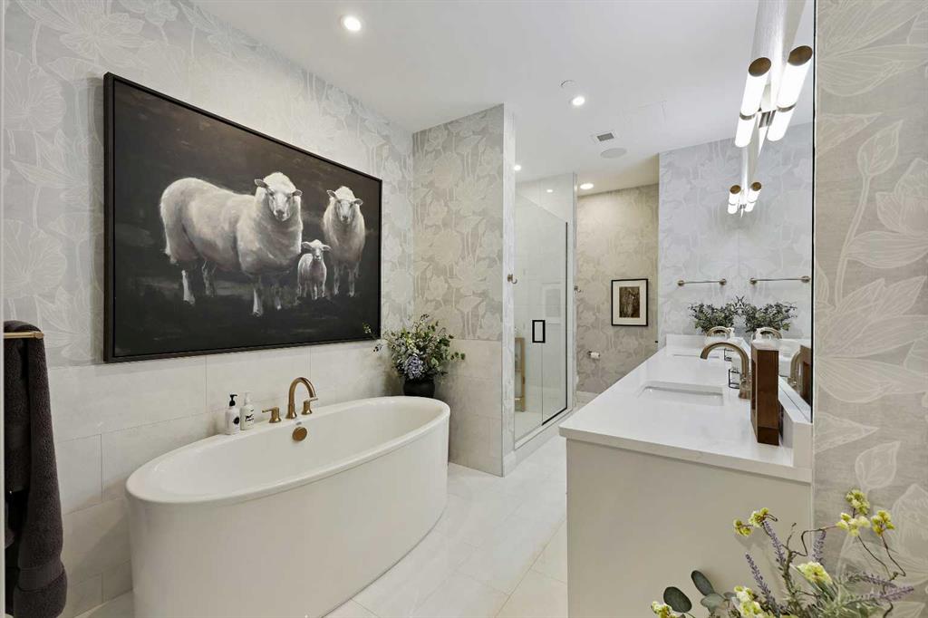 Your opportunity to experience maintenance free elevated living in the sought after West District awaits. This meticulously designed 2 Bedroom + Den residence will have you in awe from the moment you enter – boasting over 1400 square feet of interior living space and over 400 square feet of outdoor private patio, this park facing unit truly does not miss. As you enter the unit you will immediately notice the large closets offering you plenty of storage space, an in suite laundry room, and the open concept functional layout. The quality of this home is apparent from the custom millwork, the hardwood floors, and the expansive floor to ceiling windows - allowing natural light to beam through the home (all complete with custom window coverings). The chef’s kitchen with its stunning waterfall island, full height custom cabinetry and a professional grade gas cooktop is an absolute show stopper. The Primary space is a true retreat, with beautiful windows, a custom feature wall, spacious walk-in closet and a spa like en-suite bathroom with its own soaker tub, dual vanities and a luxurious walk-in shower. The second bedroom is spacious with its own walk-in closet and additional bathroom. The custom glass partitioned office offers a dedicated workspace while maintain the airy open concept.