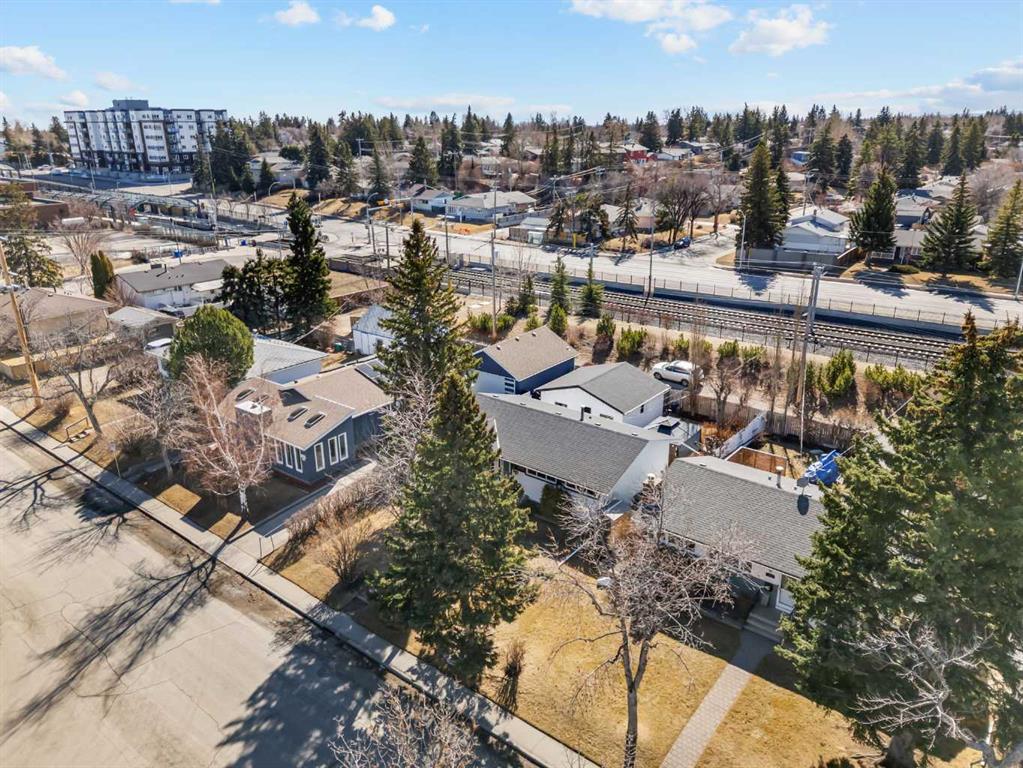 Enjoy the beautifully maintained, sunny south-facing yard where outdoor living extends the home with a true backyard oasis. An oversized garage features a new overhead door, two openers with smart technology, and an extended parking pad for guests. A landscaped berm with mature trees behind the property provides a natural buffer from 17 Ave and the LRT, creating a surprisingly quiet and private setting.