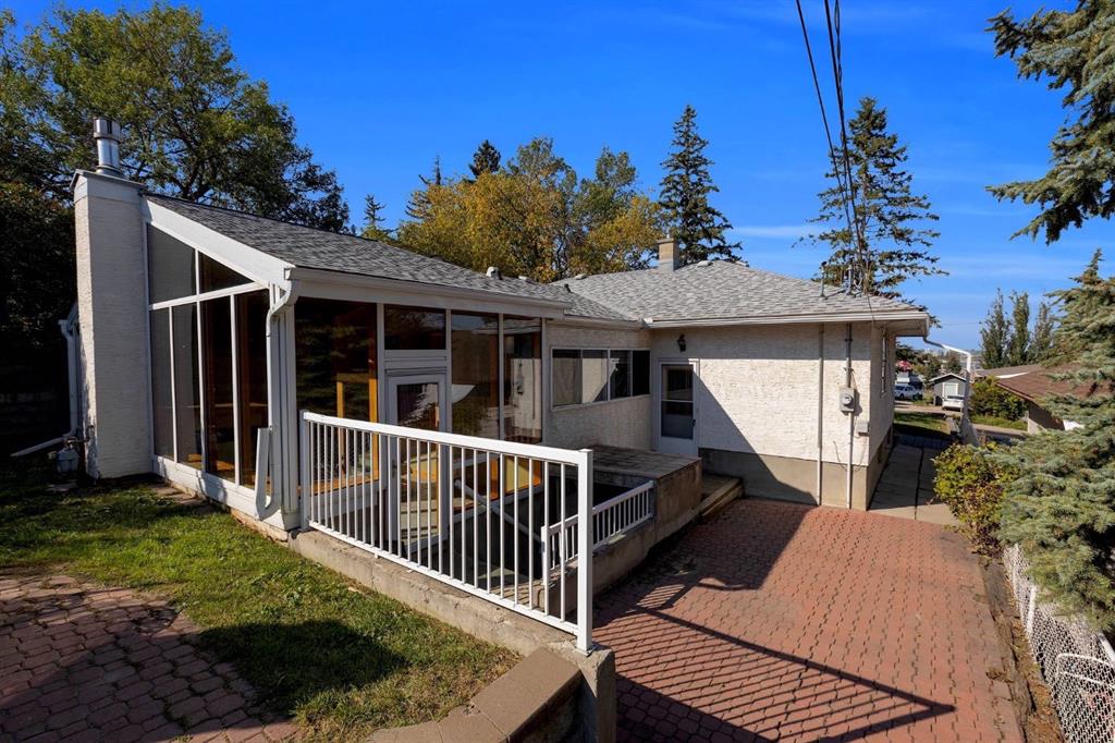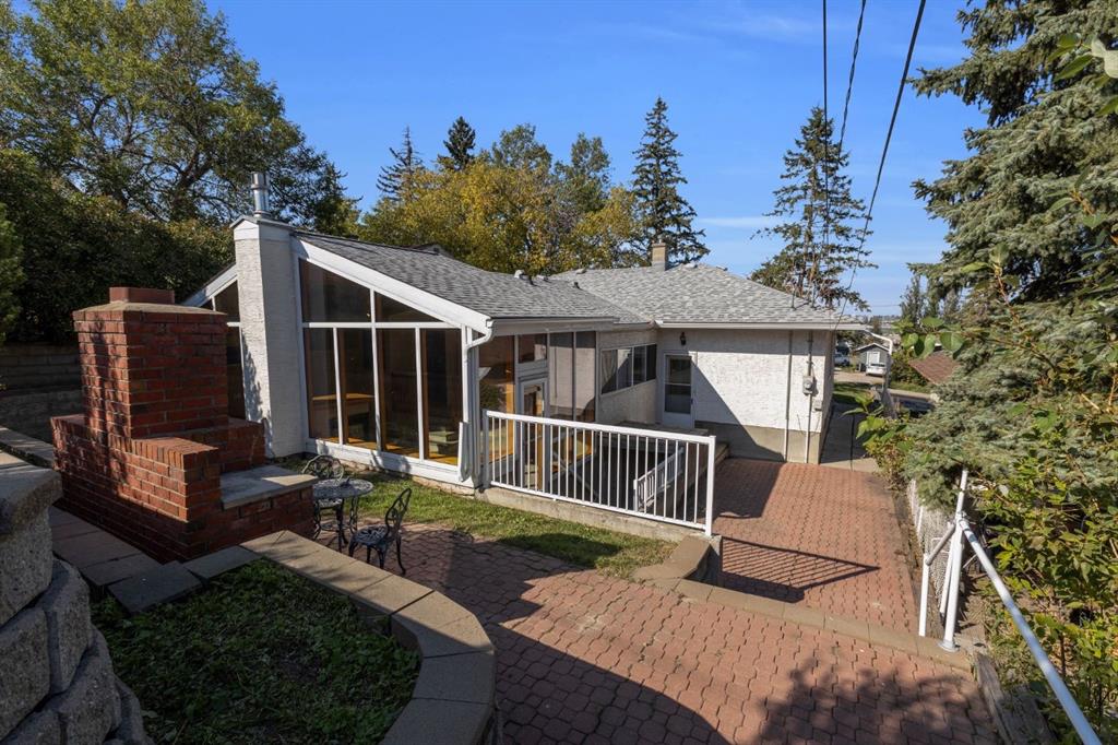 Priced Reduced! This charming BUNGALOW is brimming with potential. Situated on a 50'x115 lot with RC-G zoning and located in the highly desirable community of Winston Heights. This could be a holding property and future build, or renovate and move right in. Offering over 2,500 square feet of living space with 5 BEDROOMS and 3 FULL BATHROOMS across two levels, making it ideal for families or those needing extra space. MAIN LEVEL features 3 bedrooms and 2 full bathrooms, and boasts a large, functional kitchen that opens into a stunning sun room addition, highlighted by handcrafted cedar woodwork and a striking three-sided gas fireplace. The home retains original hardwood flooring, built-in features, and large windows that fill the space with natural light. BASEMENT is accessible via a separate entrance at the back of the house, includes TWO BEDROOMS—note that these do not have egress windows— FULL BATHROOM and a large recreation room, offering the potential for a suite (with city approval). Exterior stairs at the back of the house lead to a large storage room. The outdoor space is both beautiful and functional, featuring a south and east facing backyard that features a stunning brick outdoor fireplace, interlocking stone work and retaining wall. There is an unpaved parking pad and is large enough for two vehicles. Let's not forget curb appeal with its thoughtfully designed stonework, and mature trees and landscaped yard. LOCATION. Close to schools, shopping, transit, off leash dog park, and The Winston Golf Club. This home is just minutes from downtown, with easy access to major routes like Deerfoot Trail, TransCanada Highway, and Edmonton Trail. If you are looking for timeless charm with exciting potential please call your REALTOR today to view this home. Don’t miss the virtual tour and floor plans to explore this wonderful property.