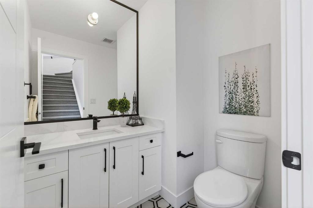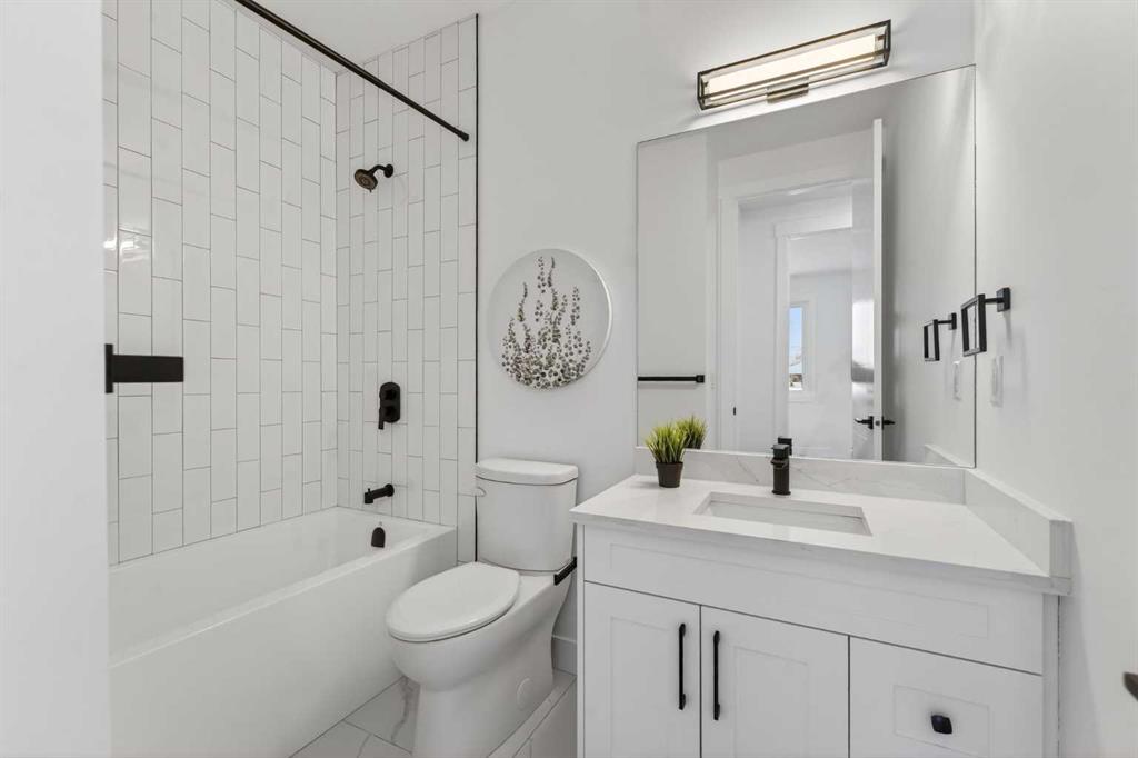 Welcome to Winston Heights Mountview! This modern infill comes with a legal basement suite with its own entrance and offers over 2400 sq. ft. of finished space. It features 5 bedrooms and 3.5 bathrooms, with high-end finishes throughout. The main floor has 10’ ceilings, big windows, an open dining area, and a stylish kitchen with quartz counters, a large island, and KitchenAid stainless steel appliances. The living room includes a gas fireplace, built-in shelves, and access to the patio. Upstairs you’ll find the primary bedroom with a 5-piece ensuite and walk-in closet, plus two more bedrooms, a full bathroom, and laundry. The basement has 9’ ceilings and a fully legal 2-bedroom suite with its own kitchen, living space, and laundry—great for family or rental income. This home also includes a double garage, downtown views from the front, and an excellent location close to schools, parks, shops, and just minutes from downtown. One of biggest backyards in this area.