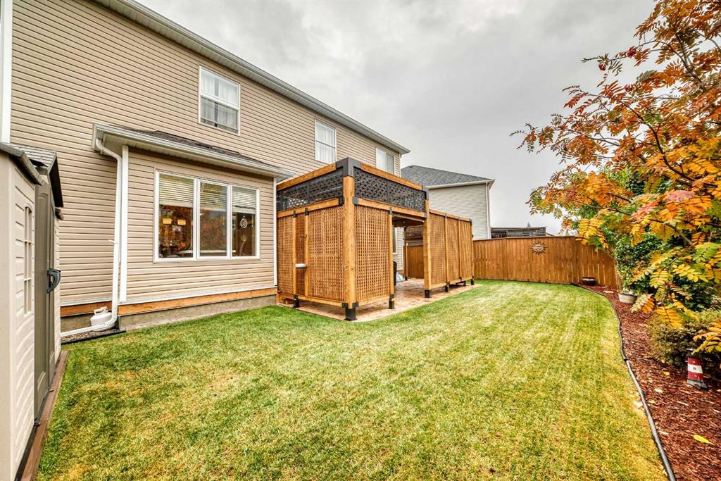 Welcome home to 132 Waterlily Cove - a farmhouse-style oasis built by award-winning Mattamy Homes, where warm family memories await. Nestled on a quiet cul-de-sac in Lakepointe, this home offers more than 2,800 sq ft above grade, head-turning curb appeal with its huge verandah, and an oversized double attached garage. Step through the foyer and you're greeted by a vaulted ceiling, welcoming you inside. Gorgeous maple hardwood and ceramic tile stretch throughout the main floor, complemented by 9ft ceilings you’ll find on both levels. Need to work from home? There’s a private home office behind frosted double French doors. Want to host dinner parties? A formal dining room with a tray ceiling sets the mood. The heart of the house is the modern kitchen - espresso shaker maple cabinets, marbled granite counters, stainless steel appliances (including induction stove & hood fan), a huge corner pantry, and a big island with extra storage. The adjacent breakfast nook is bright, framed by 6ft windows that bring the outdoors in. Enjoy cozy evenings in the family room, anchored by a ceramic-tiled gas fireplace with a rich dark maple mantle. In summer, the stamped concrete patio with custom pergola beckons for family BBQs or lazy afternoons. Beyond, the yard is beautifully landscaped and well-maintained. Upstairs, you’ll find a massive bonus room - great for movie nights or a kids’ hangout. The primary suite is a retreat, large enough for a king bed, with two walk-in closets! The ensuite includes a soaker tub, glass-encased shower, and a 7ft dual vanity. Two additional generous bedrooms and another full bathroom with double sinks ensure everyone has space. Laundry is also upstairs, with extra storage, and the recently added A/C keeps things comfy year-round. The unfinished basement is a blank canvas waiting for your ideas - there's space to add another bedroom, rec room, and even a full bathroom. Location is everything. In Lakepointe, you get walking trails, parks, green space, and proximity to Chestermere Lake for boating, paddleboarding, and fishing - plus easy access to shopping, schools, and highways. If you’re looking for a family home that blends style, comfort, and a community outside of the big city - this is it!