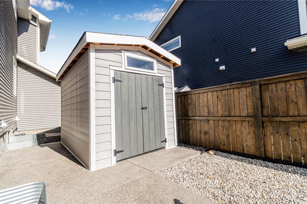 The outdoor space offers a private retreat, designed with over $60,000 in high-end landscaping upgrades. Features include maintenance-free artificial turf, privacy screens, a tiered composite deck, exposed aggregate patio and pathways, a custom pavilion, and a matching storage shed—ideal for outdoor entertaining or quiet relaxation.