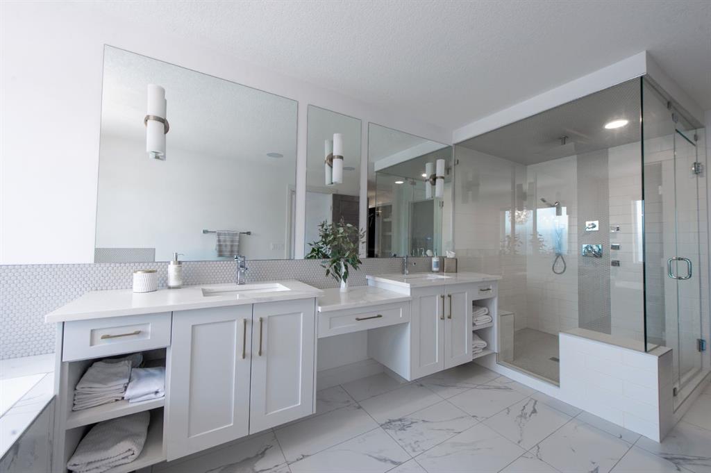 The main floor balances elegance and comfort with a private office, a formal dining room with tray ceilings, and a stunning open-to-above living room anchored by a cozy fireplace. The spacious kitchen is designed for both family life and entertaining, offering a large island, high-end stainless steel appliances, a walk-through pantry with direct garage access, and plenty of storage thanks to its ceiling-height cabinetry. From the kitchen, step out onto the glass-railed deck with a natural gas BBQ hookup, perfect for summer evenings.