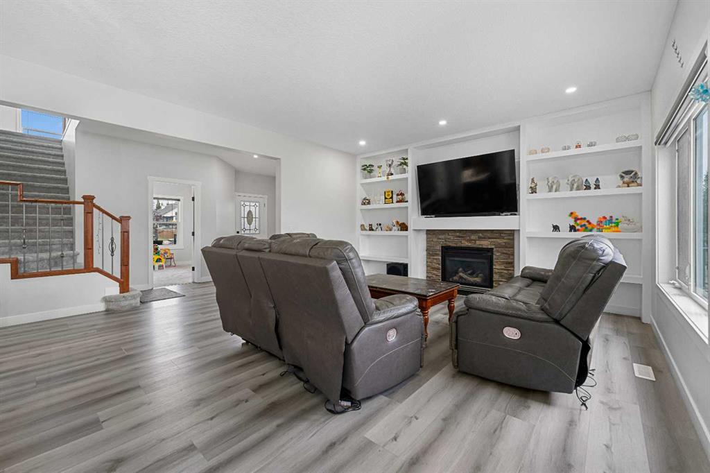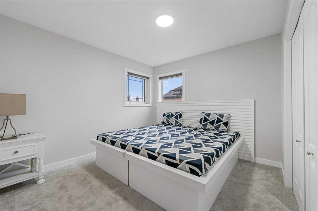 Directly Across From a Park | Seconds to Prairie Waters Elementary School | Quick Walk to Chestermere Lake & All Shopping | Walkout Basement Suite(illegal) | Brand New Blinds | 2 Furnaces & 2 Hot Water Tanks | 2,542 SqFt | Total of 6 Beds & 3.5 Baths | Expansive Living Space | Open Floor Plan | Spacious Kitchen | Quartz Countertops | Stainless Steel Appliances | Extended Kitchen Island with Barstool Seating & Built-in Wine Rack | Walk-through Pantry | Large Windows | Bright Natural Light | Main Level Office | 4 Upper Level Bedrooms | Primary Ensuite with Soaking Jet Tub | Upper Bonus Room | Vaulted Ceilings | Upper Level Laundry Room | Walkout Basement Suite(illegal) | Separate Entry | 2 Basement Beds & 1 Bath | Incredible Backyard | Massive Lawn | Double Attached Front Garage | Driveway. What more could you ask for from this stunning 2,542 SqFt family home in the perfect location! The front door opens to a foyer with with closet space keeping it organized. The main level has great living space with a front family room and a living room with a gas fireplace. The living room open to the kitchen and dining make this the perfect to host friends & family. The kitchen is outfitted with wood cabinets, stainless steel appliances, laminate countertops and a centre island with barstool seating and a built-in wrack. The kitchen has a walkthrough pantry for dry goods storage that connects to the mud room & interior garage door. The dining room overlooks your backyard with large windows letting natural light beam through. The main level office is a bonus for your work-from-home lifestyle. Head upstairs to 3 additional bedrooms grandiose bedrooms a family room with vaulted ceilings & a full laundry room. The primary bedroom is paired with a walk-in closet and private 5pc ensuite with a deep soaking tub, dual vanities & a walk-in shower. Bedrooms 2 & 3 upstairs are both sizeable and share the 4pc bath with a tub/shower combo. The family room is extravagant and comfortable with plush carpet and large windows. The upper level laundry is a treat as its near majority of your bedrooms. Downstairs, the WALKOUT basement is set up as a suite(illegal) with its own separate access at the rear of the home. The open floor plan living room and kitchen provide space for flexible living and dining space. The basement kitchen has cabinets both above & below, stainless steel appliances and laminate countertops. The 2 bedrooms on this level are a great size & share the 3pc bath with a walk-in shower. This lower level has storage and the utility room! Step outside to a massive backyard with plenty of space for the adults to enjoy while the kids play in the park across the street! Your backyard has plenty of room for a large outdoor dining set and more! The location can't be beat; walking distance to Chestermere Lake, the major shopping complex with all amenities and the Prairie Waters Elementary School. Don't miss out, hurry and book your showing at this incredible family home today!