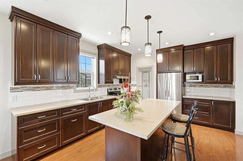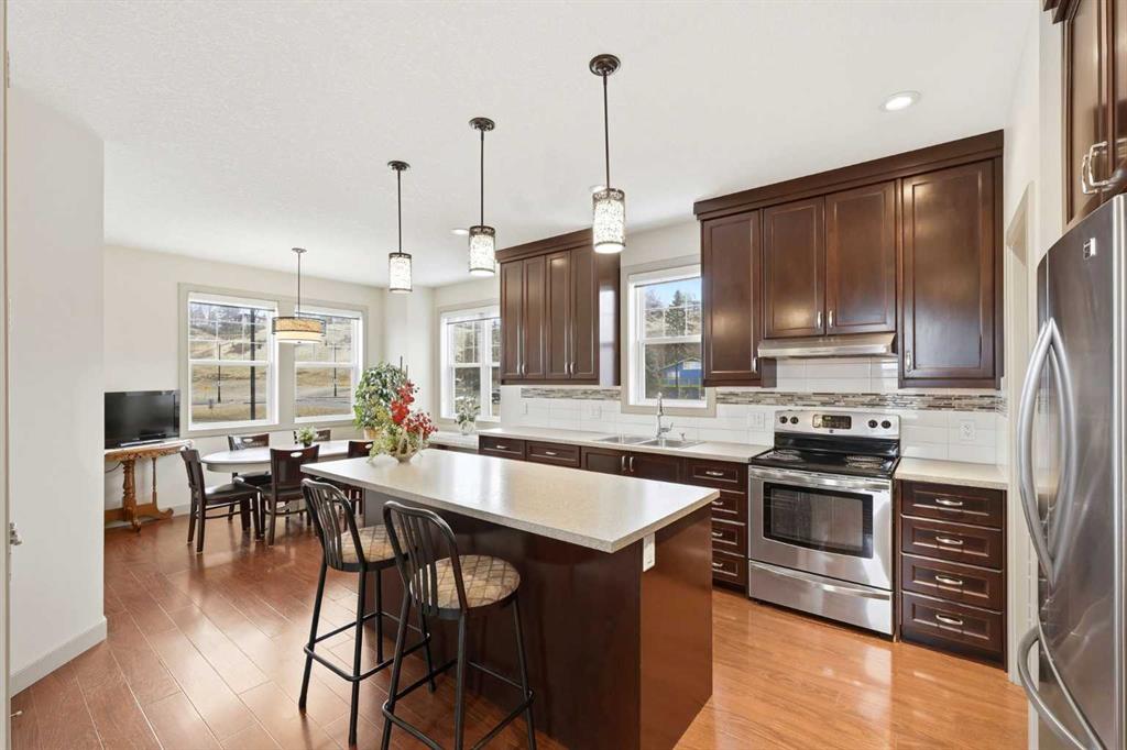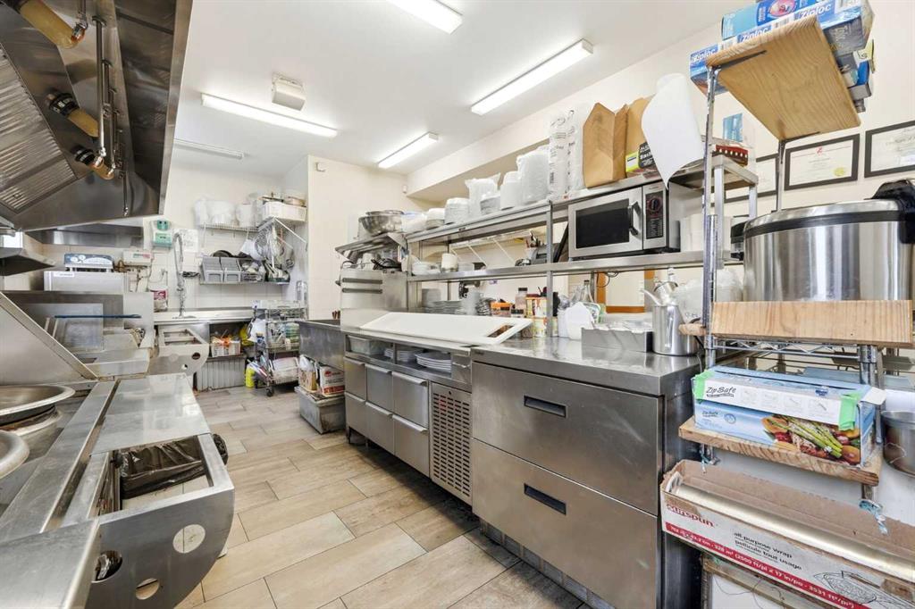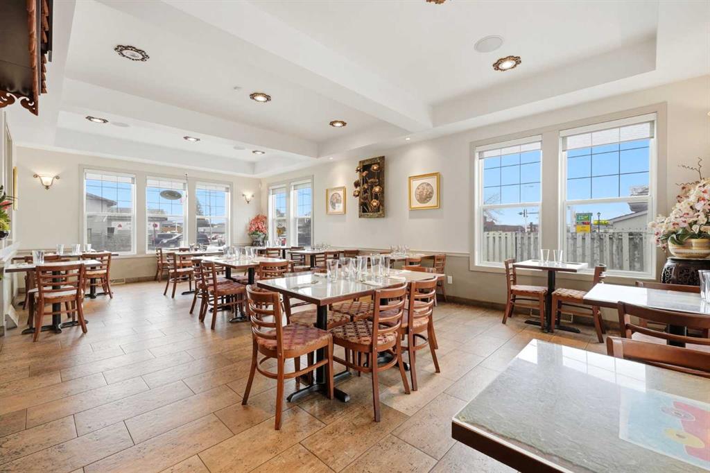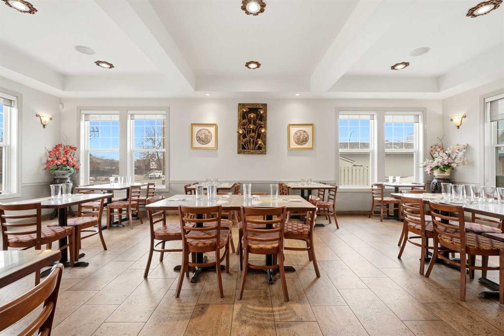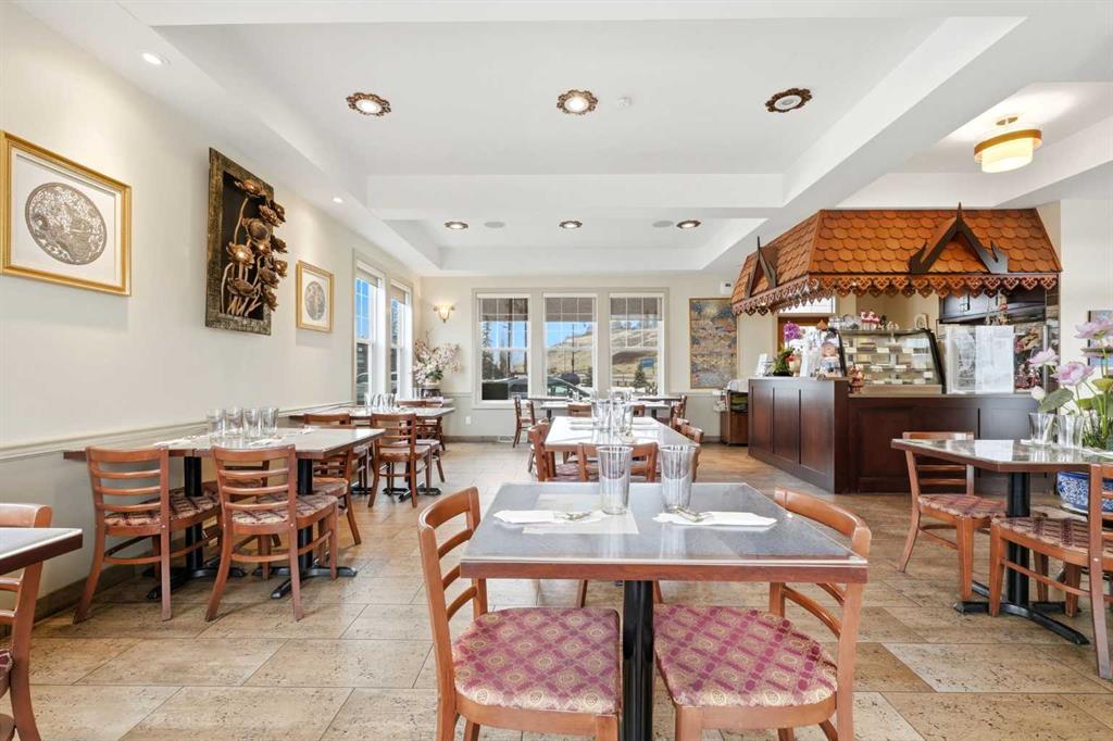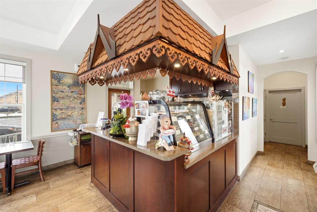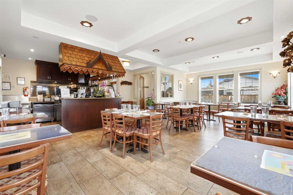 Rare opportunity to own Thai Ozon Restaurant in Cochrane, with land, building, and business all included. The main floor features a fully operating 42-seat Thai restaurant plus patio seating, serving authentic Thai cuisine and vegetarian dishes that appeal to a broad customer base and a wide range of dietary preferences. Upstairs, the second floor offers a spacious and beautifully finished living area with hardwood flooring throughout, 4 bedrooms, and 3 bathrooms. The gourmet kitchen is equipped with stainless steel appliances, a corner pantry, and a convenient laundry room. The large primary bedroom features a walk-in closet and private 4-piece ensuite, while the generous living room opens onto a balcony. With a separate entrance, the basement includes a 2-bedroom illegal suite complete with a full 4-piece bathroom, kitchen, laundry room, storage area, and utility room. This exceptional property offers the rare chance to live, work, and invest all in one location, with added potential for additional income. Own your business, own your building, and stop paying expensive retail rent. Call today to explore this exciting opportunity.
