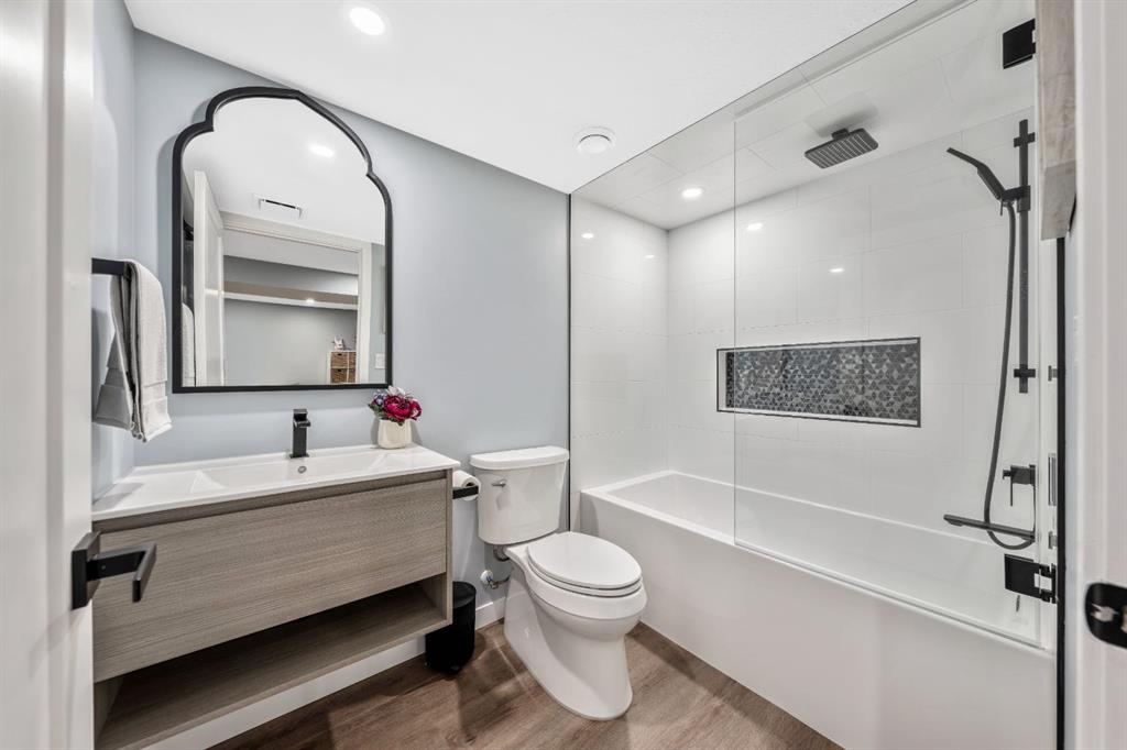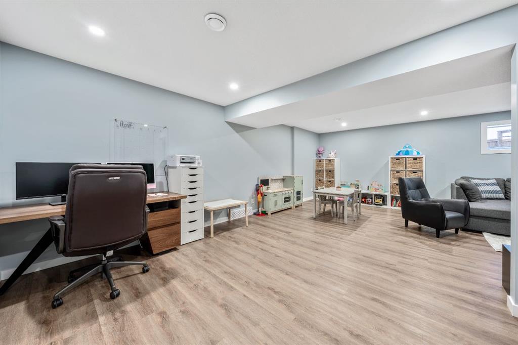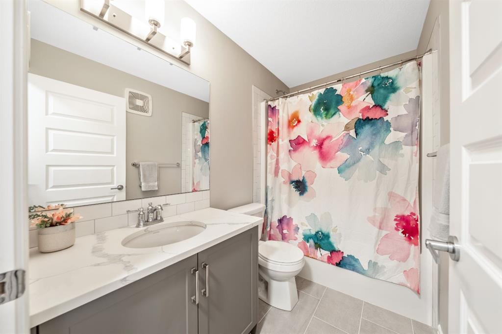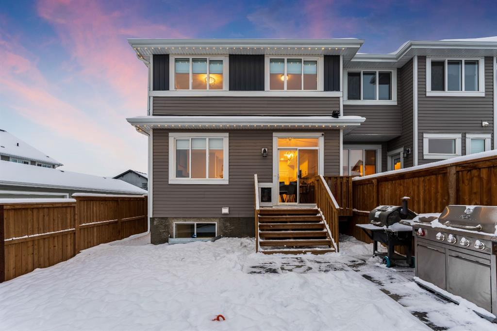 Welcome to this beautifully upgraded, FULLY FINISHED home offering modern finishes, thoughtful design, and exceptional comfort from top to bottom. Set on a fully fenced lot and complete with a HEATED DOUBLE GARAGE, this property is truly move-in ready with nothing left to do. Step inside to a bright, inviting main floor where style meets modern function. The open-concept layout features a stunning kitchen with upgraded appliances—including a smart fridge, induction stove, dishwasher, and microwave—plus a large island perfect for meal prep and gathering. The spacious living room offers a sleek electric fireplace with a custom pull-out mantel designed to discreetly house your media components. The generous dining area flows seamlessly to the private, fully fenced backyard with a storage shed and a gas line on the deck for those summer BBQ nights. Upstairs, the primary bedroom impresses with a luxurious 5-piece ensuite and a walk-in closet. Two additional well-appointed bedrooms share a beautifully finished 4-piece bathroom. The upper level also features a large laundry closet equipped with Samsung appliances, custom cabinets, and built-in shelving for added convenience. The professionally finished (permitted) basement expands your living space with a second electric fireplace, an included TV, and a full 4-piece bathroom with an extra-deep soaker tub—ideal for relaxing after a long day. The heated double attached garage is both comfortable and functional, complete with included wooden shelving for extra storage. Additional features and upgrades include: a tankless water heater, central air conditioning, central vacuum, Gemstone exterior lighting, two electric fireplaces, all window coverings (including blackout blinds), fully fenced yard, and an included storage shed. Located in Heartland, this home offers quick access to nearby amenities and an easy escape to Ghost Lake, Canmore, and the Rocky Mountains—perfect for weekend adventures and everyday convenience.