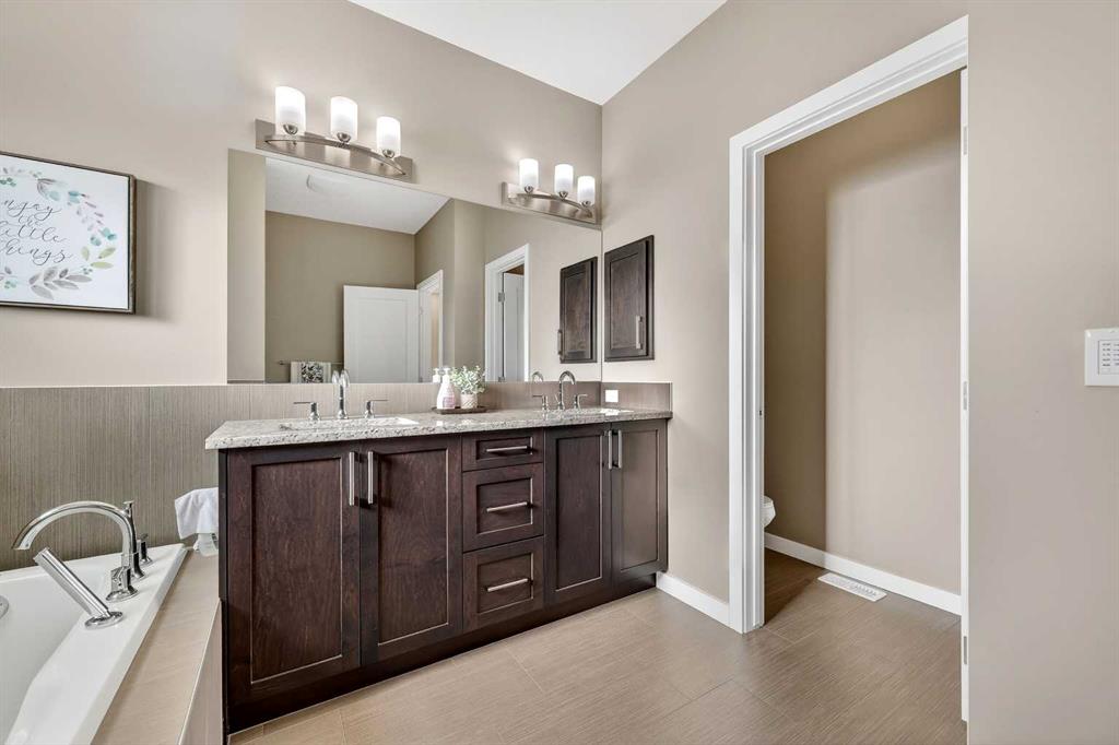 Upstairs, the primary bedroom retreat features a walk-in closet and ensuite with both a soaker tub and walk-in shower. Two additional bedrooms each offer walk-in closets, plus a full bathroom, upper-floor laundry, and a large bonus room ideal for a media room, home office, or kids’ space.