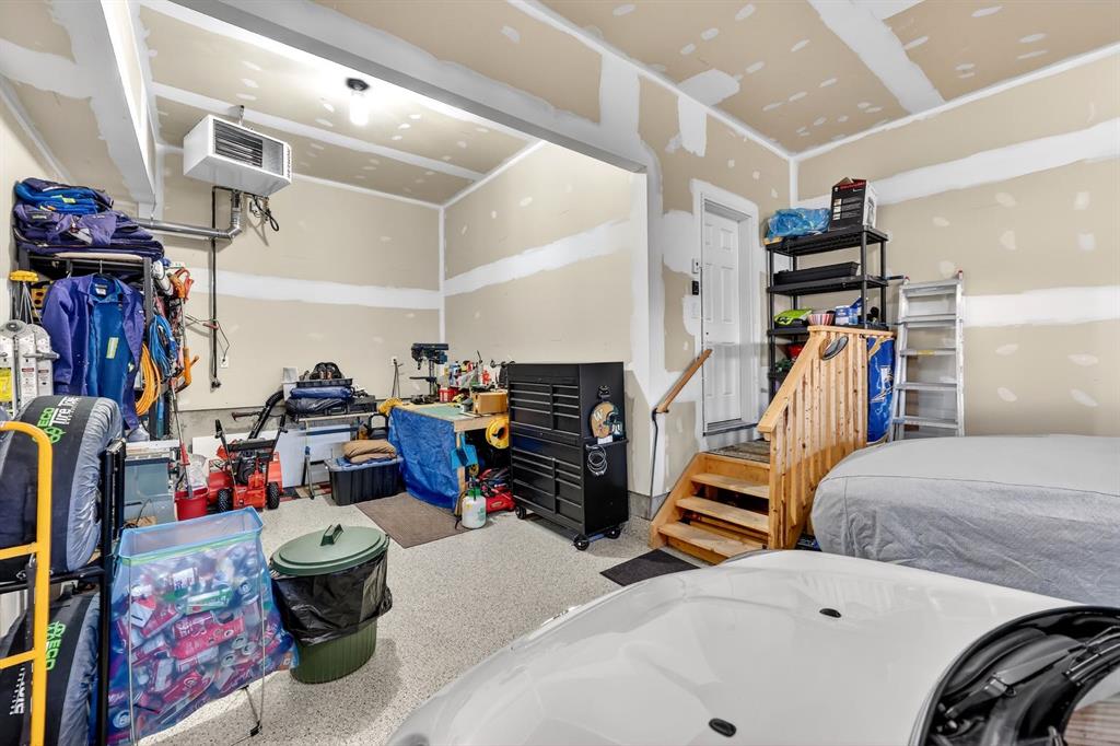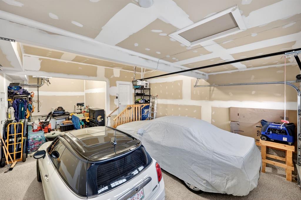 The south-facing backyard receives sun throughout the day and includes an oversize deck with privacy shades and secure storage underneath. The oversized, heated garage offers room for vehicles, storage, or hobbies.