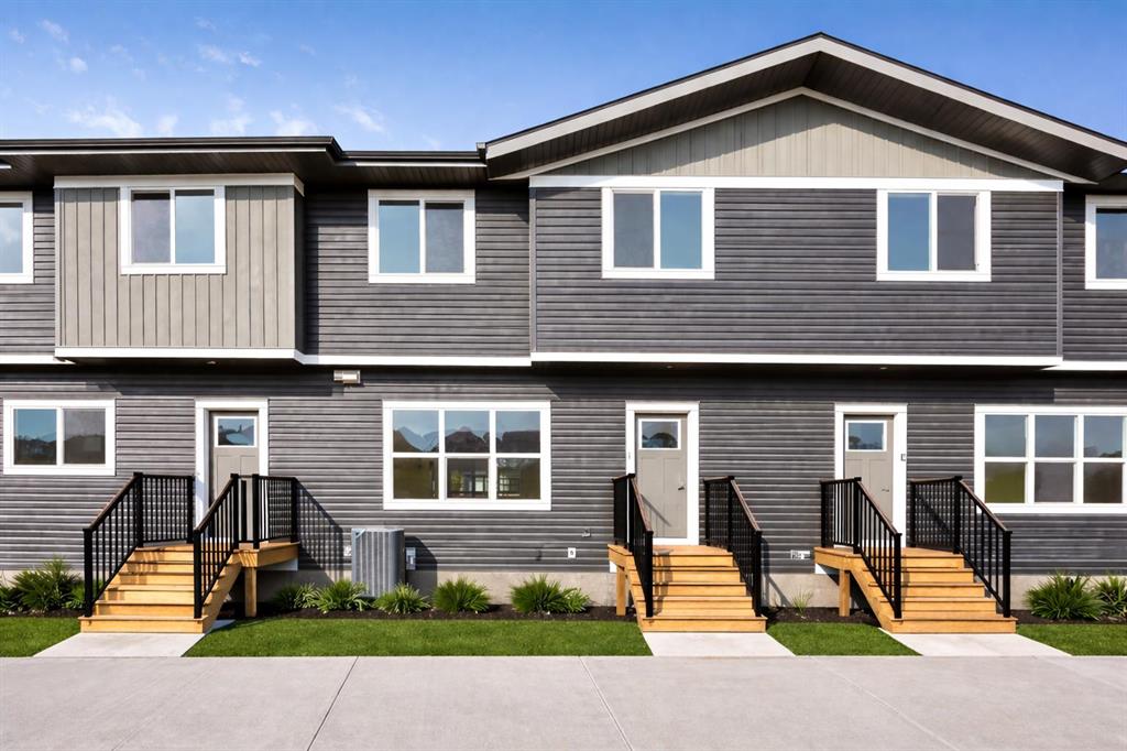 Welcome to this STUNNING, like-new townhome nestled in the sought-after community of River Song! Surrounded by Cochrane’s scenic rolling hills and natural beauty, this thoughtfully designed and impeccably maintained, this home offers the perfect blend of style, comfort, and functionality. The main floor showcases a bright and modern aesthetic, featuring sleek white cabinetry, elegant quartz countertops, stainless steel appliances, and stylish lighting. A large central island anchors the space, while the added coffee bar with extra cabinetry and pantry storage creates a perfect spot to start your mornings. Warm, natural-toned vinyl plank flooring flows throughout, enhancing the open-concept layout that seamlessly connects the kitchen, dining, and living areas—ideal for both everyday living and entertaining. Upstairs, the spacious primary retreat offers a walk-in closet and a well-appointed 4-piece ensuite. Two additional bedrooms provide flexibility for family, guests, or a home office, complemented by a full main bathroom and the convenience of upper-level laundry. The unfinished lower level presents a fantastic opportunity to customize the space to suit your needs. Additional features include central air conditioning for year-round comfort and two parking stalls conveniently located just outside your back entrance. Enjoy the lifestyle this location offers with easy access to the Bow River, nearby pathways, parks, and endless outdoor recreation. River Song is ideally situated with quick access to Highway 22, making mountain getaways effortless, and is just a short drive to Calgary. With schools, amenities, and the Spray Lakes Recreation Centre nearby, everything you need is within reach. Complete with a New Home Warranty, this exceptional home is truly move-in ready. Welcome home!