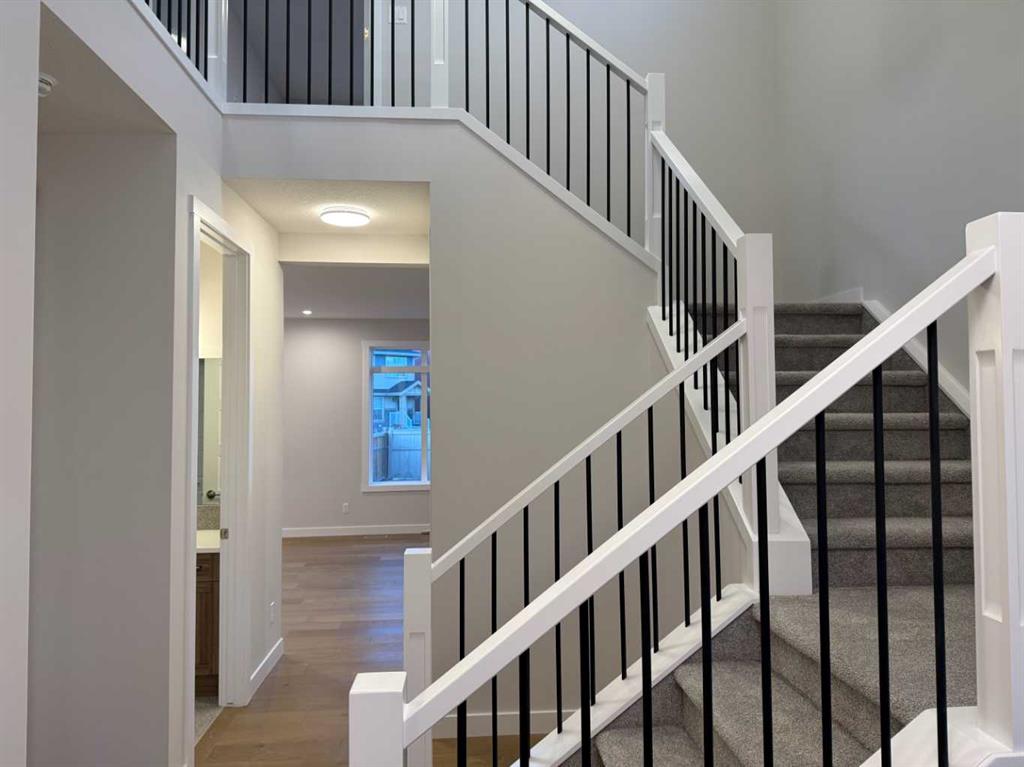 Step inside and be captivated by the abundance of upgrades awaiting you and your family. The main floor welcomes you with an open layout, soaring 9-foot ceilings, and grand 8-foot tall doors. Natural light floods the space through large windows, highlighting the beautiful engineered hardwood flooring throughout.