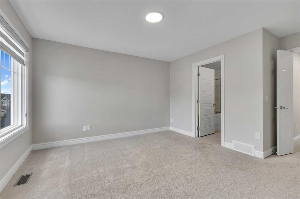 Upstairs, you’ll find three well-appointed bedrooms. The primary suite is a true retreat, complete with a private ensuite that includes quartz counters, double sinks, a luxurious soaker tub, and a separate shower. The additional bedrooms are generously sized, making them perfect for children, guests, or flexible use such as a playroom or study.