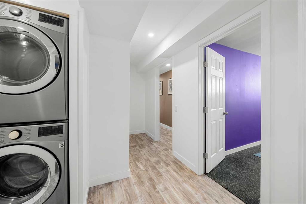 The fully developed basement offers a large family room, games/hobby area, two additional bedrooms, and a laundry room with stacked washer and dryer. It also features new doors, flooring, and windows.