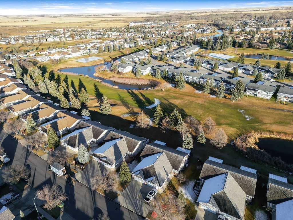 Enjoy retirement living at its finest in this beautiful bungalow villa backing directly onto the Highwood Golf Course! A truly enviable location for golf enthusiasts or anyone seeking peace, privacy, and natural views. The welcoming open-concept main floor features vaulted ceilings in the living and dining areas, creating a bright, airy feel that’s perfect for entertaining or quiet relaxation. The kitchen showcases classic oak cabinetry, upgraded beveled quartz countertops, and stainless steel appliances, with direct access to the maintenance-free covered deck—an ideal spot to enjoy your morning coffee or an evening beverage while watching golfers play through. The spacious primary bedroom includes a 3-piece ensuite and walk-in closet, while the den provides flexibility to use as a home office or media room. The fully developed walkout lower level offers a generous family room, an additional bedroom, and a 4-piece bath. Step outside to the ground-level concrete patio—another perfect area to unwind and enjoy the ever-changing scenery and abundant birdlife. Enjoy this 2+ bedroom and 3 full bath home. Additional highlights include a double attached garage - dimensions are 19'6 (l) x 19'3 (w) and has ample storage. Notable updates: quartz counter tops, main bath has a large walk-in shower, new washer was bought in July 2025. The homeowners’ association takes care of lawn maintenance and snow removal, allowing for a true “lock-and-leave” lifestyle. Whether you prefer strolling along High River’s Happy Trails walking and biking paths, taking in the tranquil golf-course setting, or simply enjoying the views from your own backyard, this property offers the perfect balance of comfort, convenience, and community.