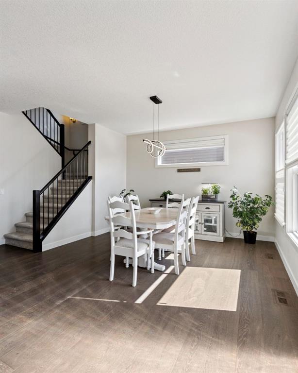 Welcome to this gem in Boulder Creek Estates! This beautifully maintained 5-bedroom home is ideally located on a quiet street just moments from the golf course. The main floor features 10 ft ceilings, a dedicated office, 2-piece bathroom, laundry room, and a spacious mudroom with built-in lockers. The modern kitchen is equipped with stainless steel appliances, granite countertops, a massive island, and a convenient walk-through pantry, all overlooking a cozy living room with a gas fireplace. Upstairs offers a comfortable family room, three bedrooms, a 4-piece bathroom, and a luxurious primary retreat complete with a 5-piece ensuite and walk-in closet. The fully developed basement includes two additional bedrooms, a 4-piece bath, a large recreation room, and ample storage. Enjoy the sunny south-facing backyard, professionally landscaped with a dog run and storage shed. The IMPRESSIVE 4-CAR GARAGE is insulated, heated, and features 220V wiring with its own panel. Additional highlights include 9 ft interior doors throughout, water softener, reverse osmosis system, central vacuum, and high-efficiency furnace and hot water system. Recent upgrades (2024) include a GAS stove, AIR CONDITIONING, new fridge, new washing machine, smart thermostats, and new carpet. This home shows exceptionally well and has been meticulously maintained. A must-see!!