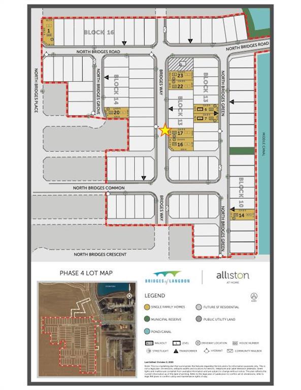 Bridges of Langdon is growing with Phase 4 now underway! Incredible opportunities await with ready-to-build lots & floor plans, and pricing to fit all budgets. Whether just getting started, looking for more space or simplifying your lifestyle, we have something for you! // WELCOME TO THE “OLIVE” AT 30 BRIDGES WAY. A fully, developed Bungalow with attached, Triple Car Garage! Offering 4 Bedrooms + 3 Full Baths and 9’ Ceilings on both the Main & Lower Level. Step inside the welcoming Front Entry and experience Main Floor living at its best. Luxury vinyl plank flooring throughout keeps the entire space light, bright and open. The Kitchen boasts a centre Island, quartz countertops, walk-in Pantry & Stainless Steel Appliance Package to include an upgraded Gas Stove, Range Hood and built-in Microwave. Easily entertain family & friends in the adjacent Dining Room & Living Room (with Fireplace) while hosting Backyard BBQ’s on the Deck. The Primary Retreat is outfitted with a Walk-In Closet and 4-Piece Ensuite featuring dual sinks, built-in Make-Up Vanity, separate Toilet Room & Walk-In Shower. Additionally down the hall is Bedroom #2, another 4-Piece Main Bath & spacious Mud Room/Laundry Room with direct access to the attached, Triple Car Garage measuring in length 20’6” (single bay) and 22’8” (double bay) x 29’6” in width. The fully developed Basement offers 9’ Ceilings, a REC/Family Room, Bedrooms #3 & #4, another full Bathroom, and large Storage/Mechanical Room with Tankless Hot Water Heater. Additional features of the home include: Triple Pane Windows, 9’x8’ Back Deck with gas BBQ hook-up, rough-ins for a future Basement Wet Bar, quartz countertops throughout & an attached Triple Car Garage. Bridges of Langdon is a thoughtfully planned, family-oriented community located just east of Calgary. Designed to blend small-town charm with modern living, the neighbourhood features spacious homes and a network of parks, scenic pathways and water features that encourage an active, outdoor lifestyle. A peaceful place for families to put down roots while staying connected to the big city. Take advantage of this early opportunity! // Note: Measurements are taken from Builder Plans and may change upon completion. Photos are representative only. Actual layout, fixtures, finishes and colours may vary without notice. Buyer may have customization options if purchased early. // Plan ahead and secure your new home in one of Langdon’s most promising new areas!
