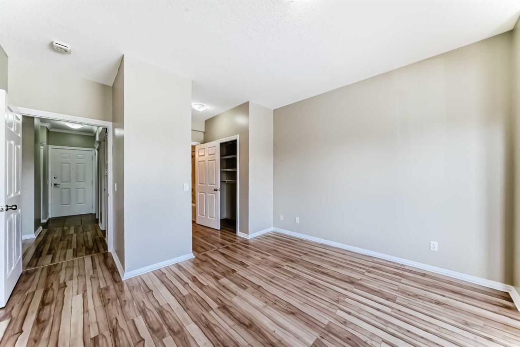Large 2 bed/1 bath condo located walking distance to the unique shops and services in Okotoks Olde Town. Featuring in floor heat and nine foot ceilings, this home has a large primary bedroom with walk thru closet access to the 4 piece bath. The 2nd bedroom is also a nice size. There is a private east facing balcony to catch the morning sun and enjoy the afternoon shade in the summer. Other features include in-suite laundry, secure storage unit on the main floor and one covered parking stall. The home has just been professional painted and professionally cleaned. The building is very quiet and has only has 14 units with long term residents. There is a no smoking policy and dogs must be under 20 lb.