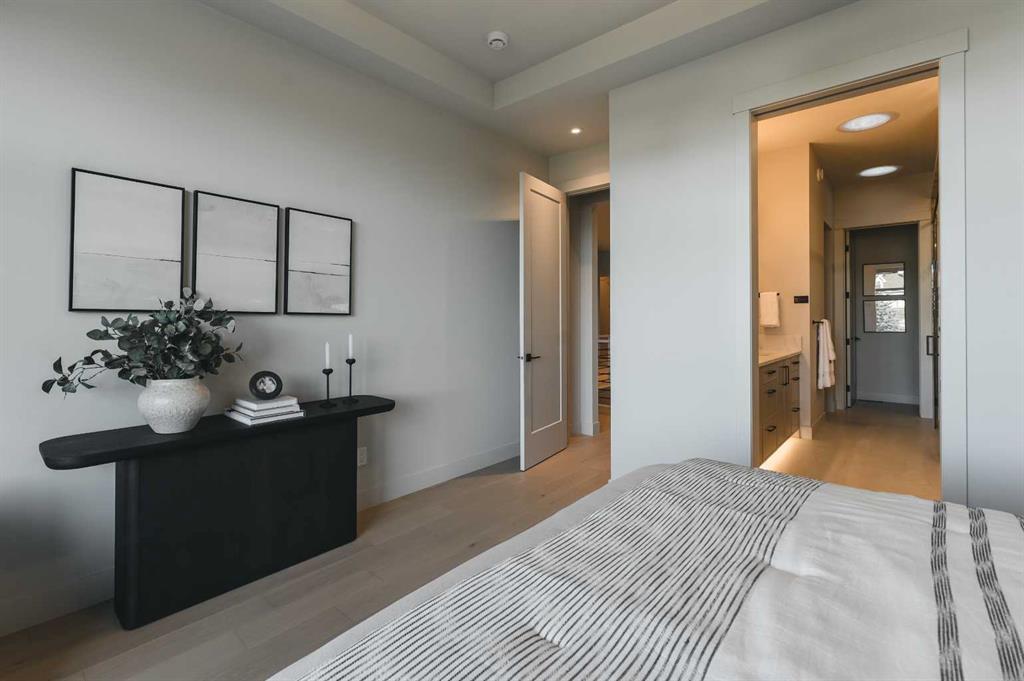 Experience over 3,200 sq. ft. of luxury living in this executive villa featuring 3 bedrooms, 2.5 bathrooms, a 3-stop elevator, golf simulator room, and an oversized double garage. The open-concept main floor showcases engineered wide-plank hardwood, custom tile, 10’ ceilings, and a spacious great room with large sliding doors leading to a covered rear deck and private fenced yard. The chef-inspired kitchen boasts all KitchenAid appliances, including a six-burner gas cooktop, custom hood fan, refrigerator/freezer, dishwasher, and built-in oven with convection microwave. A home office with beam detailing adds style and functionality. The primary suite offers a spa-inspired 5-piece ensuite with heated floors, freestanding soaker tub, oversized shower, and a custom walk-in closet. The fully finished basement features a large rec room, two bedrooms, full bath, and a dedicated golf simulator space. Additional highlights include Tilt and turn triple glazed windows Solar panels as a standard, EV charger ready, a high-efficiency furnace, heat pump, air conditioning, and radiant in-floor heating. Discover refined living at 733 Serenity Bend—schedule your private showing today!