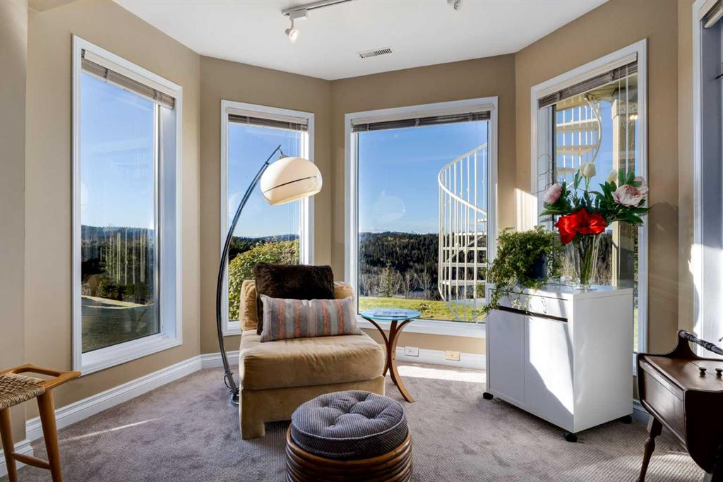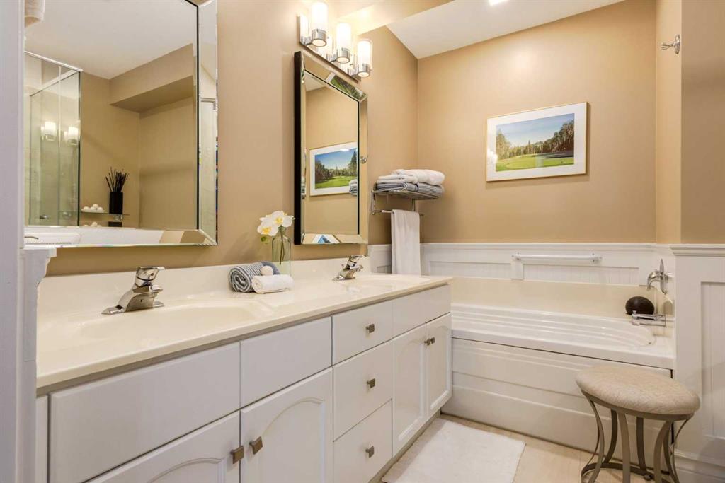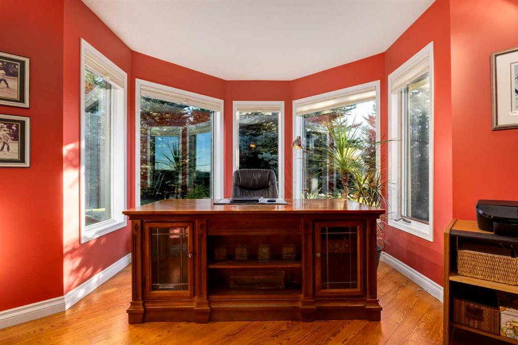 You’ll love the view from the lower level as well, and thanks to the walkout and west backing lot, it won’t feel like a basement at all. The primary bedroom was moved down here, and has a big walk-in closet and gorgeous 5-pc ensuite, featuring a travertine tile shower and other updates. Another full bathroom, bedroom and amazing sauna are also here for added convenience. The brick fireplace adds a rustic mountain feel, the wet bar and exterior vented wine room really complete the space. The furnace and humidifier are new in 2025, and the basement is heated with in-slab, radiant heat. The boiler is regularly serviced and is in great shape. The home is also outfitted with central A/C, so the mechanical aspects of the home are all ready to go for years to come. The oversized, heated, double garage has a lot of space for 2 vehicles. There’s a Reznor furnace, epoxy coated floor and there’s even a golf cart bump out so you can get back and forth to golf course and driving range. Inside and out, this home has been immaculately cared for and is move in ready with nothing needed for many years to come, we’d invite you take the short drive west of Calgary to come see this fantastic opportunity to have that little piece of paradise you’ve always wanted!