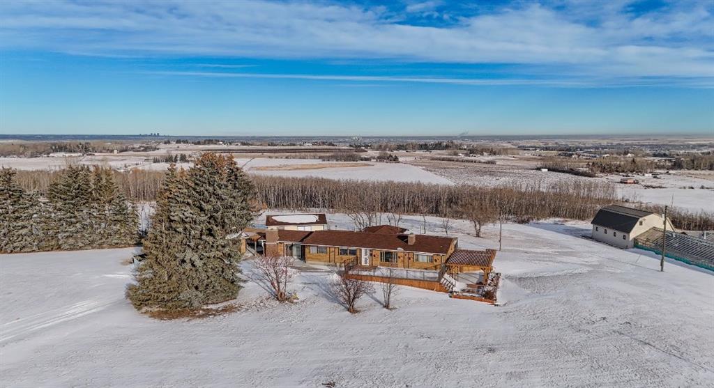 Breathtaking panoramic views of rolling countryside, sunrises, sunsets, the Rockies, and Calgary’s skyline define this exceptional gated & fenced almost 40 acre property just 5 mins to Calgary city limits south. Original family owned and built, 1st time ever listed. Formerly a licensed commercial greenhouse operation, the beautifully landscaped property features mature trees, concrete walkways, and endless potential. The large cedar log bungalow offers warmth and character with 2 wood burning fireplaces, expansive living spaces, flexible bedrooms/offices, developed basement areas, and seamless indoor-outdoor living with decks, pergolas, and patios. Equipped with hydronic and forced-air heating, A/C, Vacu-Flo, security system, radon mitigation, dual wells, softened and distilled water, and a meticulously maintained septic system. Extensive infrastructure includes a triple garage, heated workshop, barn with loft, and three fully serviced greenhouses, with parking. Easy highway access to Calgary and Okotoks, school bus route, agricultural income potential, and future subdivision or home-based business opportunities (with county approval). A rare, versatile acreage so close to Calgary offering lifestyle, income, and long-term value.