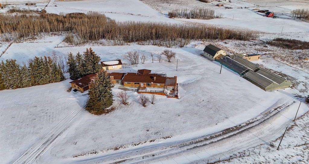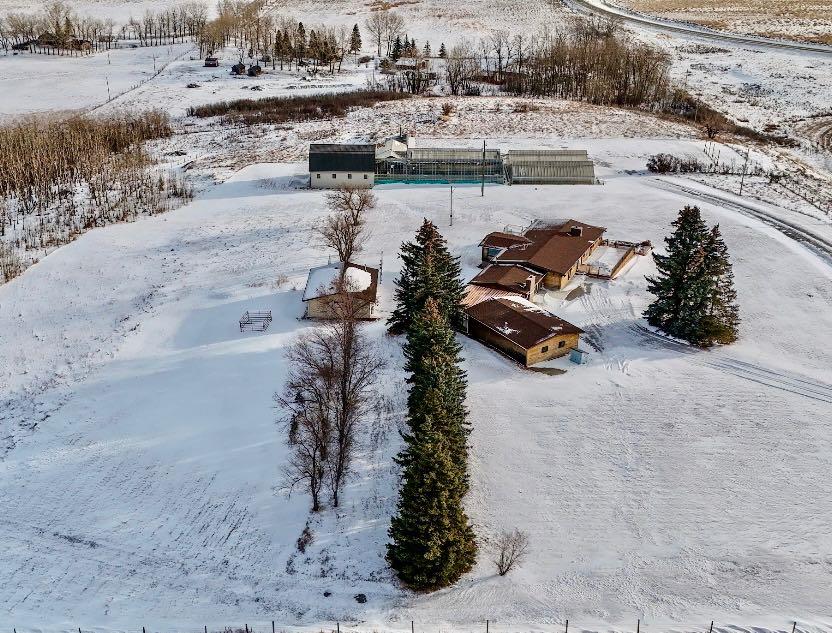 AMAZING PRICE ADJUSTMENT! CALLING DEVELOPERS, INVESTORS & EQUESTRIANS. Unbelievable opportunity on nearly 40 ACRES just 5 MINUTES South of Calgary!. Gated, fully fenced with breathtaking panoramic views of rolling countryside, spectacular sunrises & sunsets, the ROCKY MOUNTAINS and CALGARY SKYLINE. Original family-owned, first time ever offered for sale. Former licensed commercial greenhouse operation with mature landscaping, concrete walkways and exceptional versatility. HUGE CEDAR LOG WALKOUT BUNGALOW featuring 2 wood-burning fireplaces, expansive living spaces, flexible bedrooms/offices, developed basement and seamless indoor-outdoor living with decks, pergolas & patios. Extensive upgrades including hydronic & forced-air heating, A/C, Vacu-Flo, security system, radon mitigation, dual wells, softened & distilled water systems and meticulously maintained septic. Triple garage, heated workshop, barn with loft, three serviced greenhouses and ample parking. Ideal for agricultural use, equestrian lifestyle, home-based business or future subdivision potential (County approval required). Easy highway access to Calgary & Okotoks, school bus route. A truly rare acreage offering lifestyle, income potential and long-term investment value this close to the city.
