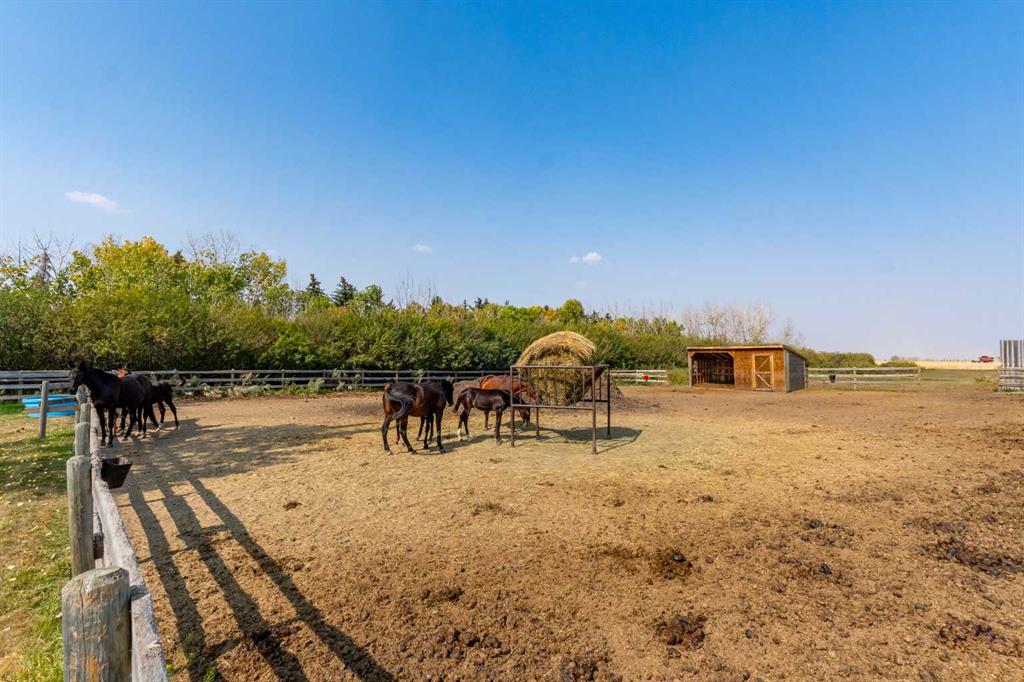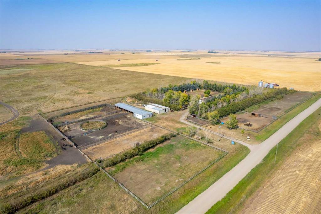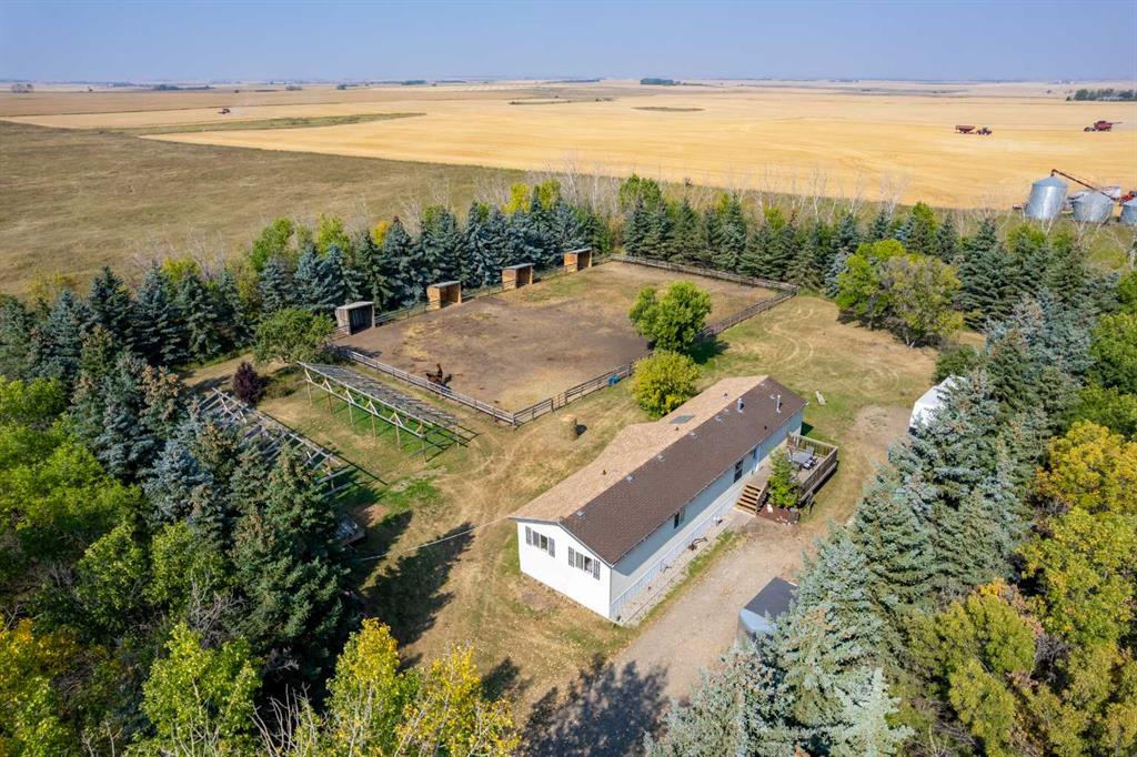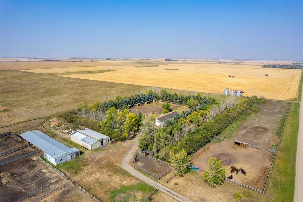 Incredible opportunity to own 120 ACRES of native pasture just 25 km east of CARSTAIRS! This beautiful property features a 1,500 sq ft modular home with 2 bedrooms (was 3 bedrooms + a Den, converted into 2 bedrooms so could have 4 bedrooms), 2 full bathrooms, drywall interior, and brand-new appliances (2024) & an OPEN CONCEPT LAYOUT. The home has been well maintained & could be Perfect for multi-generational living or future development of a 2nd/new home. Equestrian-ready with a 4-year-old- 8-stall barn (3 double, 2 single stalls) and foaling cameras. Includes a heated 36' x 30' WORKSHOP/GARAGE, 5 fenced paddocks (4 with shelters), 2 auto waterers, 96’ x 160’ outdoor riding arena (convertible into 4 paddocks), and a 96’ long shelter. There’s even a full 1-mile dirt track for training or riding. The land is serviced by a strong well, new pressure tank (2023), and a deep SPRING-FED DUGOUT & a great MATURE TREE ROW surrounding the yard site. Conveniently located approx. 1 hour to Calgary or Red Deer. This is a turn-key rural property you've been waiting for!