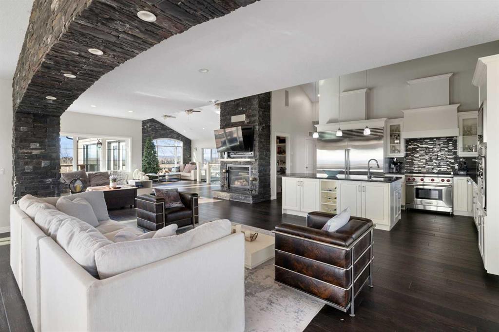 A lifestyle most only dream of! Historic Rocky Mountain views - just 8 minutes to Cochrane! Gorgeous custom-designed two-storey home featuring 4 bedrooms and 3.5 baths, with over 4900 sqft of developed living, AND 1,200 sq.ft. of wraparound decking on two levels.