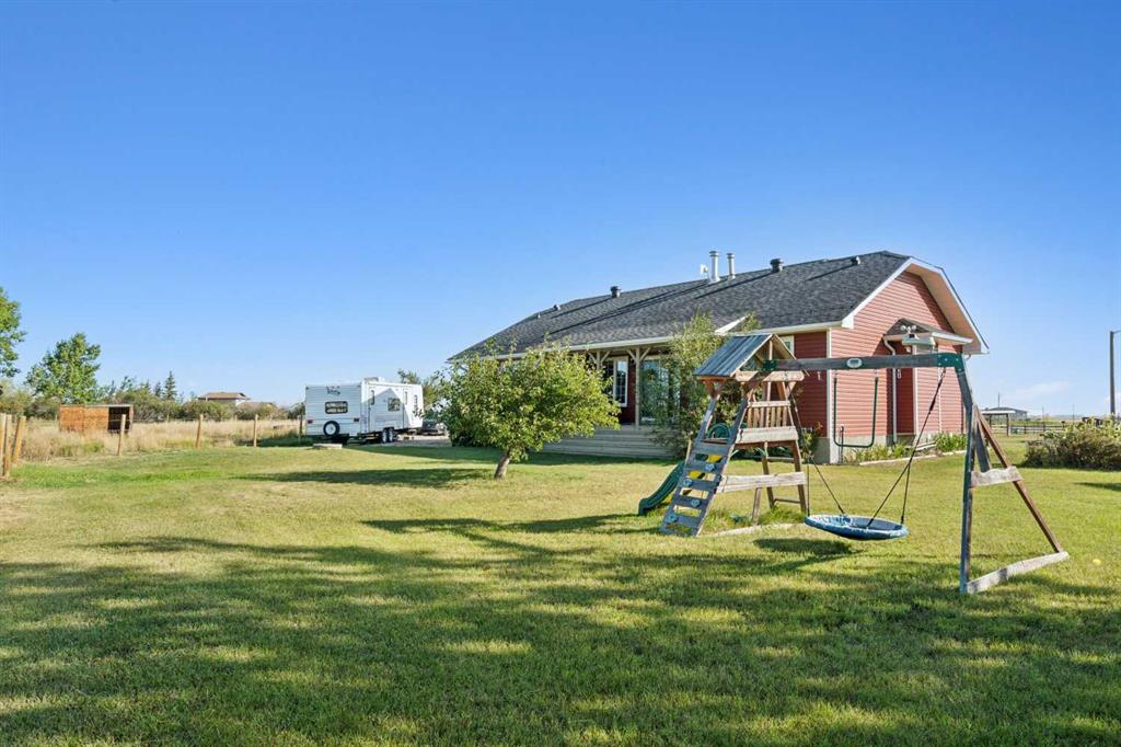 WELCOME TO A BEAUTIFUL PROPERTY! This is country living with city conveniences close by. Situated on approximately 10 acres, this exceptional property offers the space, comfort, and functionality your family needs to live, grow, and thrive. As you arrive, you’ll immediately appreciate the thoughtful layout of this beautifully positioned bungalow, featuring both east- and west-facing decks—perfect for enjoying morning coffee or unwinding with sunset views and a glass of wine. Inside, the main level offers three bedrooms, including a spacious primary suite with double closets and a 3-piece ensuite. The open-concept kitchen boasts ample cabinetry, generous counter space, and a large pantry, flowing seamlessly into the dining area—ideal for family meals and entertaining. A huge living room provides plenty of space for gathering, highlighted by a two-sided gas fireplace shared with the kitchen for added warmth and ambiance. Patio doors lead to the back deck, offering easy access to the yard and a perfect spot to watch the kids play. Downstairs, you’ll find a versatile recreation/play area, an additional 3-piece bathroom, a generous guest space with wall-to-wall closets, a large office or flex room, convenient laundry, and an oversized storage room to keep everything organized. The double attached garage is heated and insulated, complete with a workbench, extensive shelving, and a sink, plus plenty of additional parking outside. For the outdoor enthusiast or equestrian, this property truly shines. The impressive 47’ x 43’ barn features five stalls, a tack room/office, hay storage, and drive-through access. Outside, you’ll find four horse paddocks, pasture space, garden, many recently replaced fences, and a fully equipped outdoor riding arena with night lighting. Two automatic waterers add convenience and functionality. Major updates include new siding, new roof and eaves on both the home and barn (2022), new windows (2011), new well pump (2023) and a brand-new septic field (2024) with a completed Septic Feasibility Report—offering peace of mind for years to come. Located just 5 minutes from Langdon, you’ll enjoy easy access to shops, restaurants, cafes, and everyday services. Calgary is only 15 minutes away, downtown Calgary just 30 minutes, and Strathmore and Chestermere are each a quick 15-minute drive. Nothing to do but move in and enjoy. This is the lifestyle you’ve been waiting for—don’t miss it! CLICK THIS LINK TO SEE the amazing AERIAL VIDEO of this property at this link: https://youtu.be/fjUYYL55fkQ.