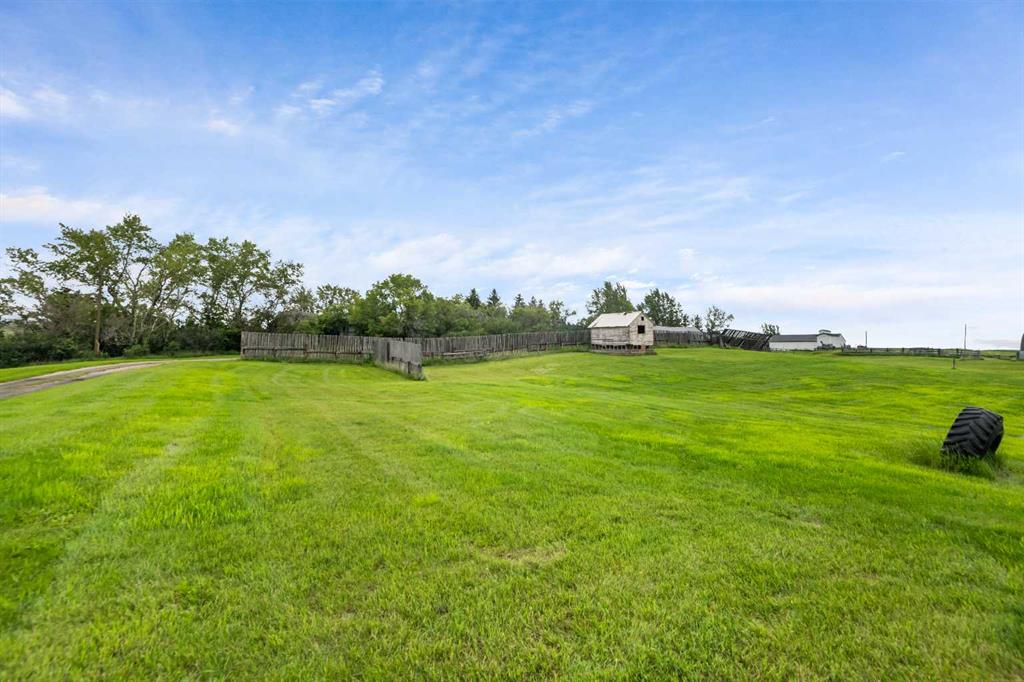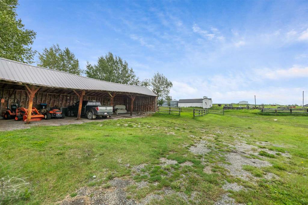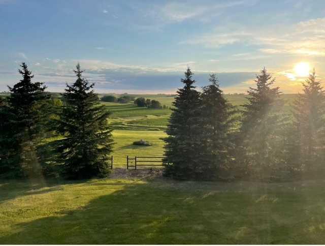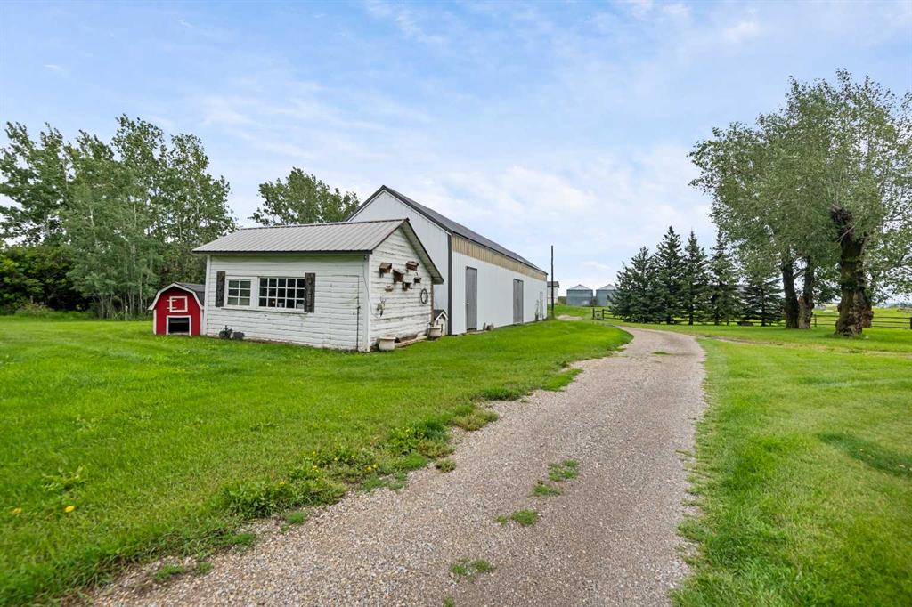 43 Acres - Madden Acreage - FOR SALE! Located just west of Madden and just 30 minutes to Calgary! This property is a serious contender for those wanting a private, upgraded property with close commuting to all major routes and communities surrounding Calgary! This gem has great mature trees and yard, and a clean and well-maintained home. The 4000 plus sq. ft walkout bungalow offers features like 5 bedroom's, 4 baths, large mud room & laundry on the main, just off the triple attached heated garage! Vaulted ceilings, skylights, granite counter tops, modern appliances thru-out. This country home boasts of added bonuses, like Central Air Conditioning, additional laundry hook-ups downstairs, tons of storage in and out of the house. There is approx. 20 acres under cultivation, and easy to upgrade to your choice of hay. The pasture has a seasonal creek running thru it and a dugout(pond) was licensed for fish! This property has been part of the 100 year old family farm and was a purebred cattle operation at one time. So, there are remnants of old corrals and automatic livestock waterer's still in place. There are 2 water wells on the property, one for the house and the other for livestock (although not hooked up at this time). This would make an ideal horse operation or any kind of livestock facility. Come have a look as there's not many like this around today!