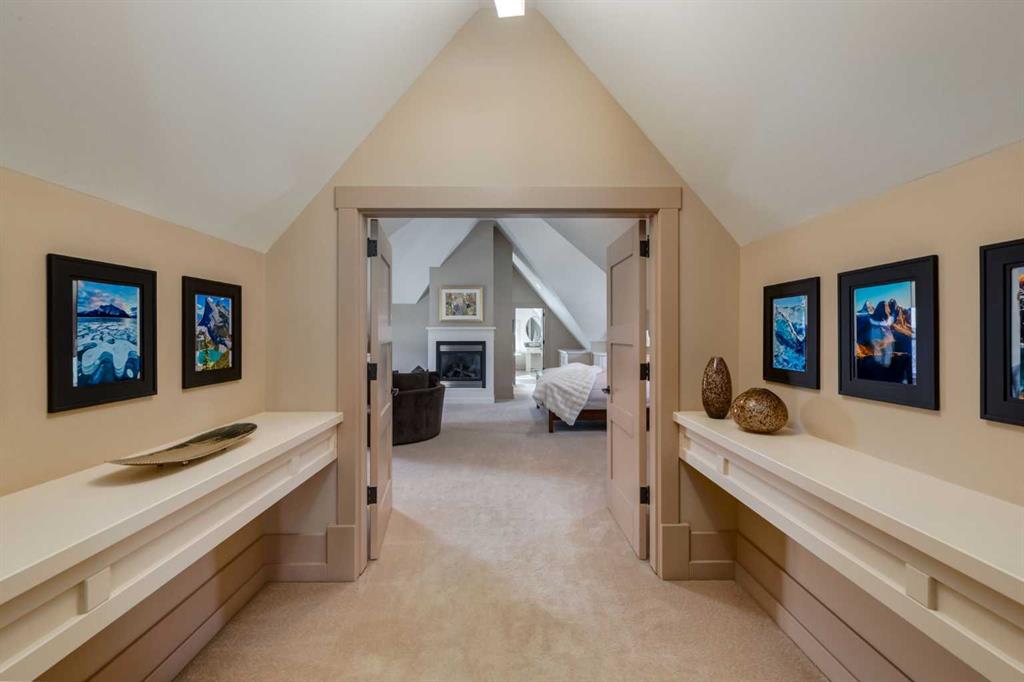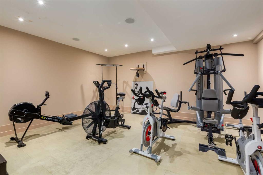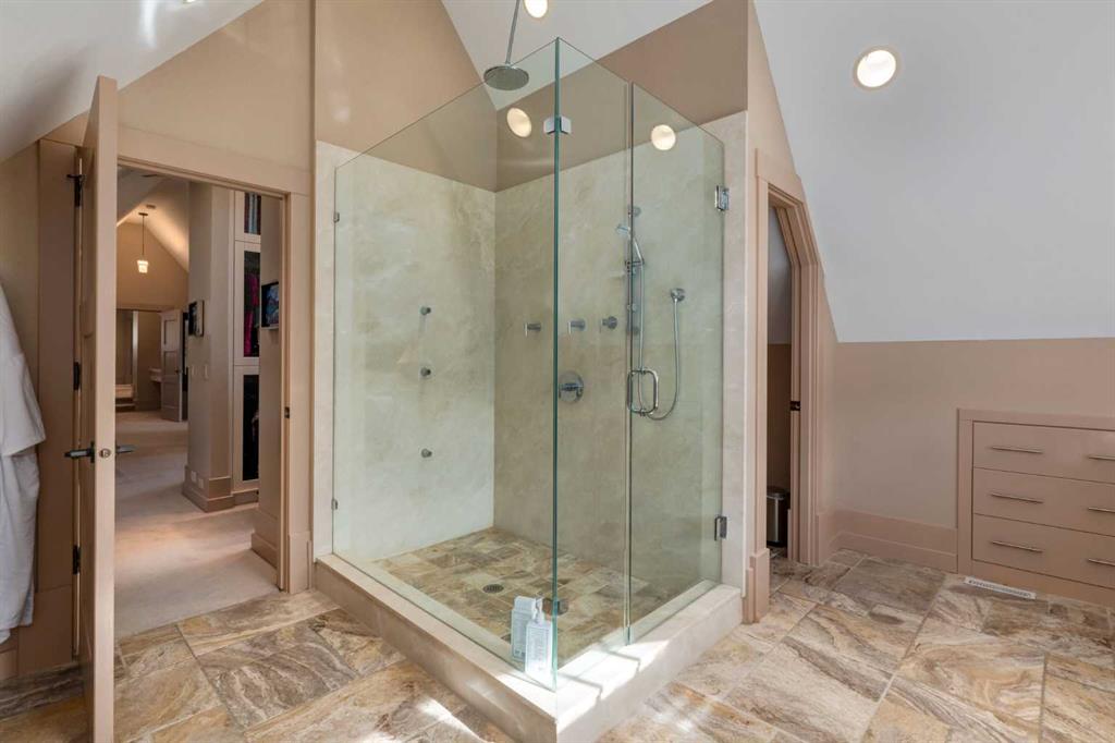 Welcome to luxury living in the prestigious community of Elbow Valley—an award-winning neighborhood just minutes from the city. Surrounded by forests, rivers, and lakes, this custom-built two-story home offers an exceptional lifestyle with a rare four-car heated garage offering over 5690 square feet of living area. As you arrive, the sense of privacy and natural beauty immediately sets the tone. As you enter the home there is a spacious foyer with built-in cabinetry. Just off the entrance is a private powder room and an impressive living room featuring soaring 20-foot vaulted ceilings, abundant natural light, built-in cabinetry, and a cozy wood-burning fireplace. The main floor also showcases an elegant formal dining room with vaulted ceilings highlighted by a two-way fireplace that connects seamlessly to the Italian-inspired chef’s kitchen, complete with high-end appliances, a large island, and stunning marble countertops. Adjacent to the kitchen is a bright breakfast nook with access to a barbecue patio and a secondary entrance to the home. The large mudroom has a second half bathroom leading to the garage which features storage cabinet, built in bike racks, and a dog washing station. Step outside to enjoy the beautifully treed and private backyard featuring a covered deck, fire pit area, and space for a trampoline—perfect for family gatherings and outdoor relaxation. There are two parks right beside the house for your kids to play with friends. Upstairs, you’ll find two generously sized bedrooms, each with its own ensuite bathroom and walk in closets. The dream-worthy primary retreat spans over 935 sq. ft., offering a sitting area, spacious walk-in closet, and a luxurious five-piece ensuite. A bonus room overlooking the main floor adds additional living space and architectural charm. The fully developed basement is designed for entertainment and wellness, featuring a recreation room with a pool table, gathering space, and wet bar. The lower level also includes a fourth bedroom with walk in closet, a full bathroom with a steam room, and a dedicated gym—ideal for home workouts. Comfort is ensured year-round with in-floor heating in the basement and full air-conditioning throughout the home. Residents of Elbow Valley also enjoy access to the Elbow Valley Residents Club and hundreds of acres of preserved natural parkland offering unmatched recreation including hiking, biking, kayaking, swimming, fishing, skating, tennis, and beach activities. Commuting is effortless with quick access to Stoney Trail, placing downtown Calgary approximately 20 minutes away. Shopping is conveniently nearby at Westhills Towne Centre and Aspen Landing Shopping Centre. The area is served by excellent schools including Springbank Community Schools, and private schools Webber Academy, Rundle College, and Calgary French & International School. A rare opportunity to own an extraordinary home in one of the Calgary's most desirable communities—book your private showing today before it’s gone.