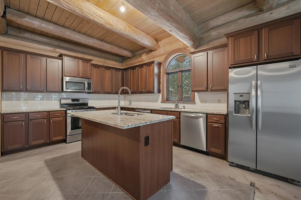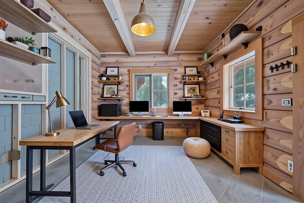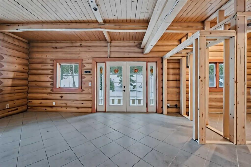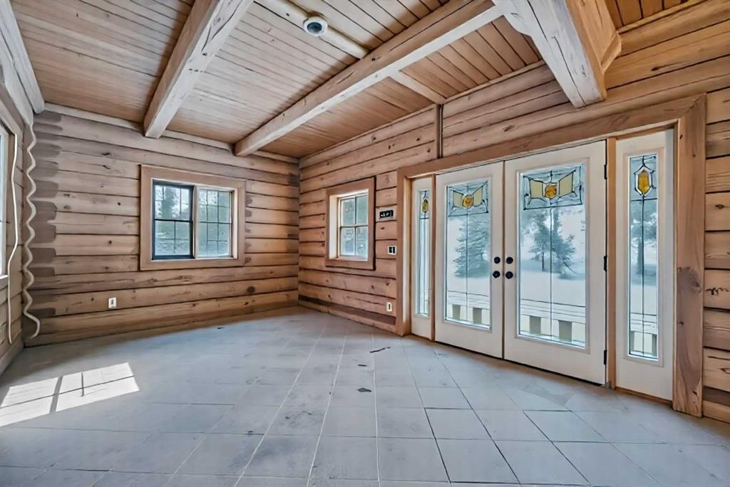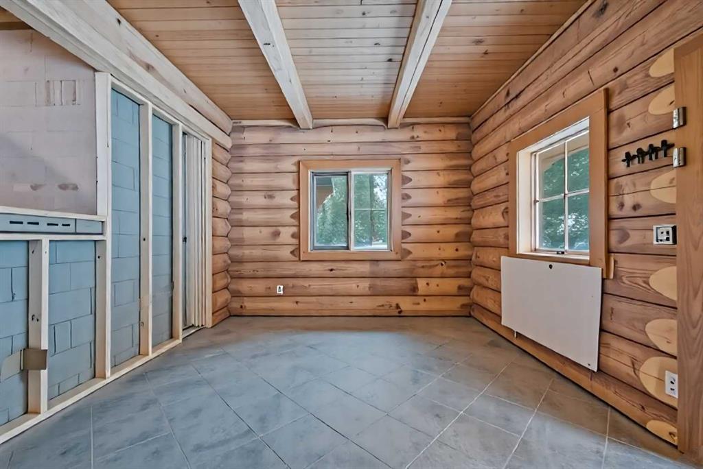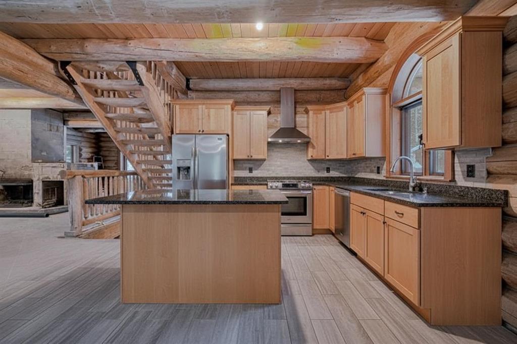 Additional features include a heated double garage, interior logs professionally dry ice–treated on the interior, a 20-year-old roof, and a pool table included with the sale.