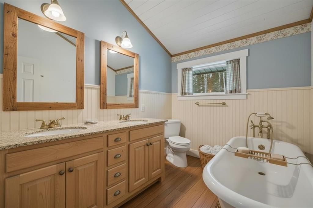 The home features a wood foundation and numerous recent improvements, including all plumbing lines replaced, a new main electrical line, and a new sump pump with updated lines. The brand new state-of-the-art heating is provided by a boiler-fed/heated forced air system servicing both the main floor and basement, complemented by on-demand hot water supplying both domestic use and the heating system, servicing the upper floor bedrooms.