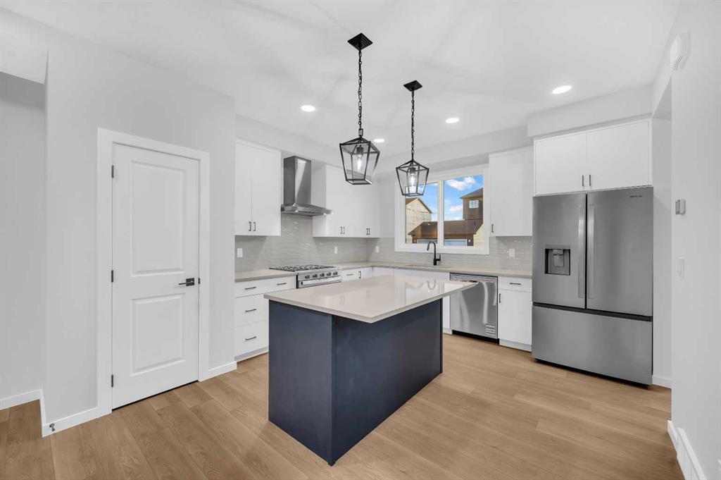 **PRICE IMPROVEMENT**OPEN HOUSE MARCH 13 | 5:00 PM TO 8:00 PM*** Be the first to live in this stunning brand-new home in Harmony- picturesque Lake community! With luxurious upgrades and plenty of space, this home features beautiful luxury vinyl flooring throughout the main floor, an open floor plan that floods with natural light, a dedicated office perfect for remote work, and a spacious living room. The gourmet kitchen is a chef's dream, boasting quartz countertops, a chimney hood fan, built-in microwave, upgraded gas range, French door fridge, and a center island ideal for food preparation and casual dining. The upper level offers a spacious master bedroom with vaulted ceilings, includes a walk-in closet and a luxurious 3-piece en-suite. Two additional good-sized bedrooms, a laundry room, and a full bathroom complete the upper level, along with a center bonus room perfect for kids' playtime, home office, or evening gatherings. The basement is a blank canvas, offering a side entrance, 9 ft ceilings, extra windows for natural light, and bathroom rough-ins, waiting for your personal touch and design ideas. Enjoy the outdoors on your private 10 x 10 deck, bbq gas line, perfect for relaxation and entertainment. Located in a prime spot, close to highway 1, shopping centers, schools, and a quick drive to Cochrane & Calgary. Don't miss out on this incredible opportunity to own a piece of Harmony! Contact your realtor today to schedule a showing and make this stunning home yours!