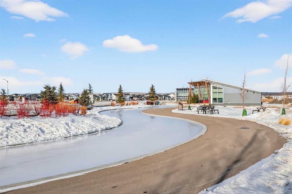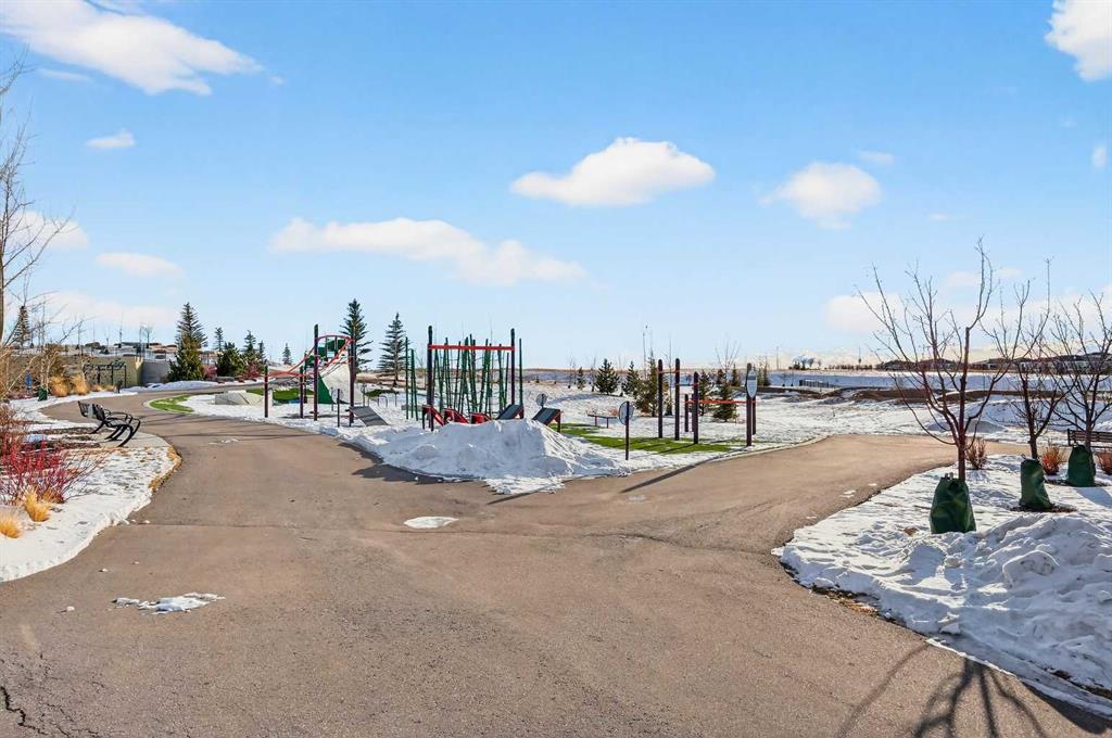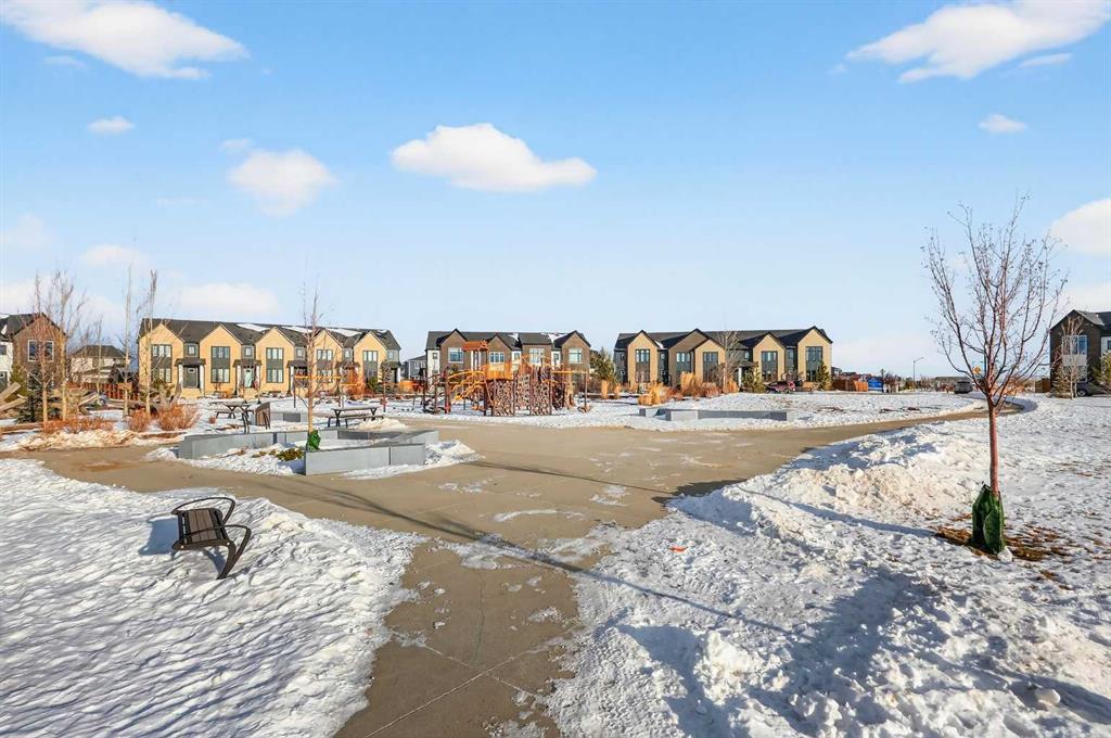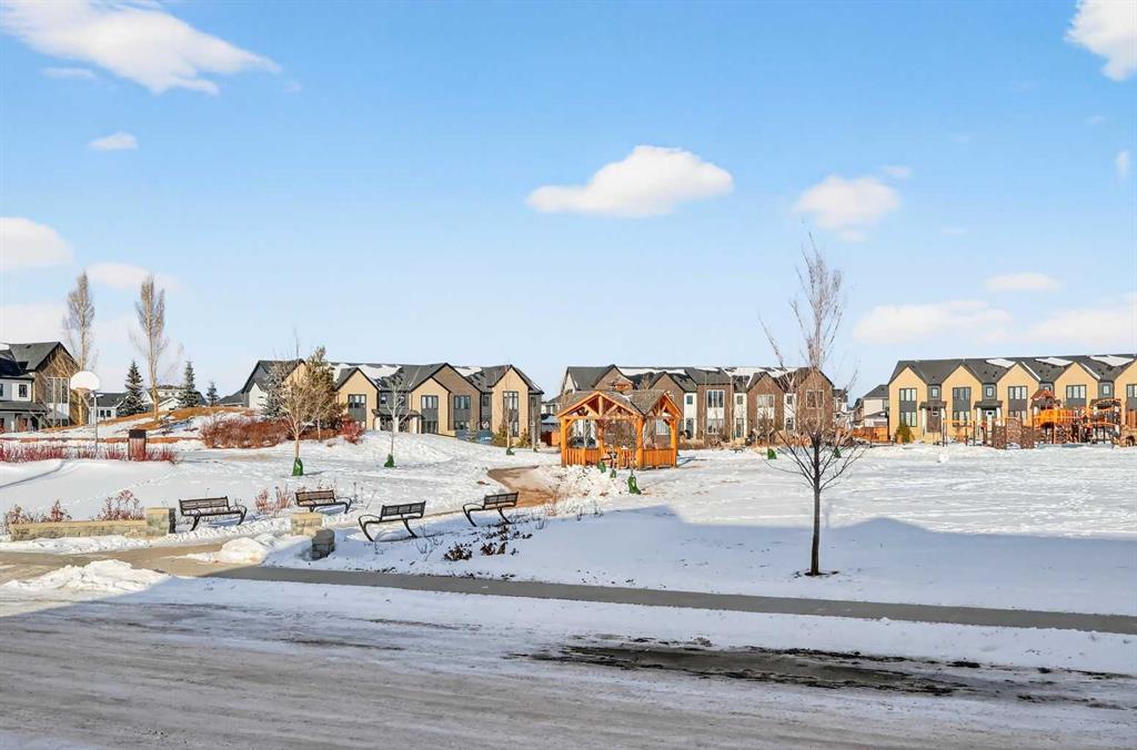 Experience the height of sophisticated living in this highly coveted luxury townhome, where a generous floor plan meets modern comfort and refined finishes. Proudly presented by StreetSide – this thoughtfully designed unit features 3 bedrooms, 2.5 bathrooms, and a front attached double car garage. The heart of the home is a spacious kitchen with a large central island, polished white quartz countertops, undermounted sink, upgraded extended upper cabinet height and stainless-steel appliances. A cozy fireplace anchors the living room, while luxury vinyl plank flooring flows throughout the main living areas, complemented by gorgeous tile in the entry and bathrooms. Upgraded spindle railings really opens up the feeling of space in this home. The primary ensuite is a private sanctuary, complete with tile flooring, double sinks, a freestanding soaker tub, and an oversized tile-and-glass shower delivering spa-inspired comfort at home. The unfinished basement with roughed-in plumbing provides future potential for additional living space tailored to your needs. Professional landscaping and fencing complete your new home. Ideally located in the award-winning community of Harmony, residents enjoy Mickelson National Golf Course, private lake amenities, scenic walking and biking trails, and a wellness-focused lifestyle—just a shorty drive from Calgary city minutes and 45 minutes from the Rocky Mountains, where nature and convenience come together effortlessly.