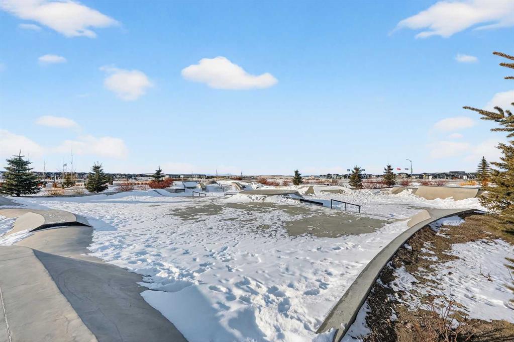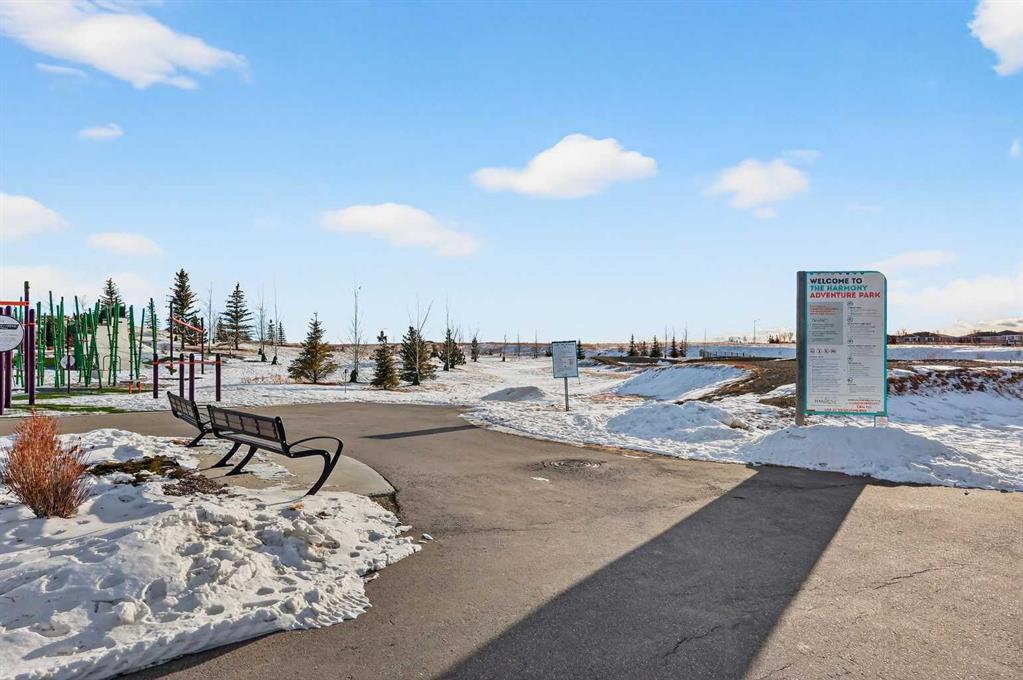 Experience the height of sophisticated living in this highly coveted luxury townhome, where a generous floor plan meets modern comfort and refined finishes. Proudly presented by StreetSide – this thoughtfully designed unit features 3 bedrooms, 2.5 bathrooms, and a front attached double car garage. The heart of the home is a spacious kitchen with a large central island, polished white quartz countertops, undermounted sink, upgraded extended upper cabinet height and an upgraded stainless steel Bosch appliances including a gas range. A cozy fireplace anchors the living room, while luxury vinyl plank flooring flows throughout the main living areas, complemented by gorgeous tile in the entry and bathrooms. The primary ensuite is a private sanctuary, complete with tile flooring, double sinks, a freestanding soaker tub, and an oversized tile-and-glass shower delivering spa-inspired comfort at home. The unfinished basement with roughed-in plumbing provides future potential for additional living space tailored to your needs. Professional landscaping and fencing complete your new home. Ideally located in the award-winning community of Harmony, residents enjoy Mickelson National Golf Course, private lake amenities, scenic walking and biking trails, and a wellness-focused lifestyle—just a shorty drive from Calgary city minutes and 45 minutes from the Rocky Mountains, where nature and convenience come together effortlessly