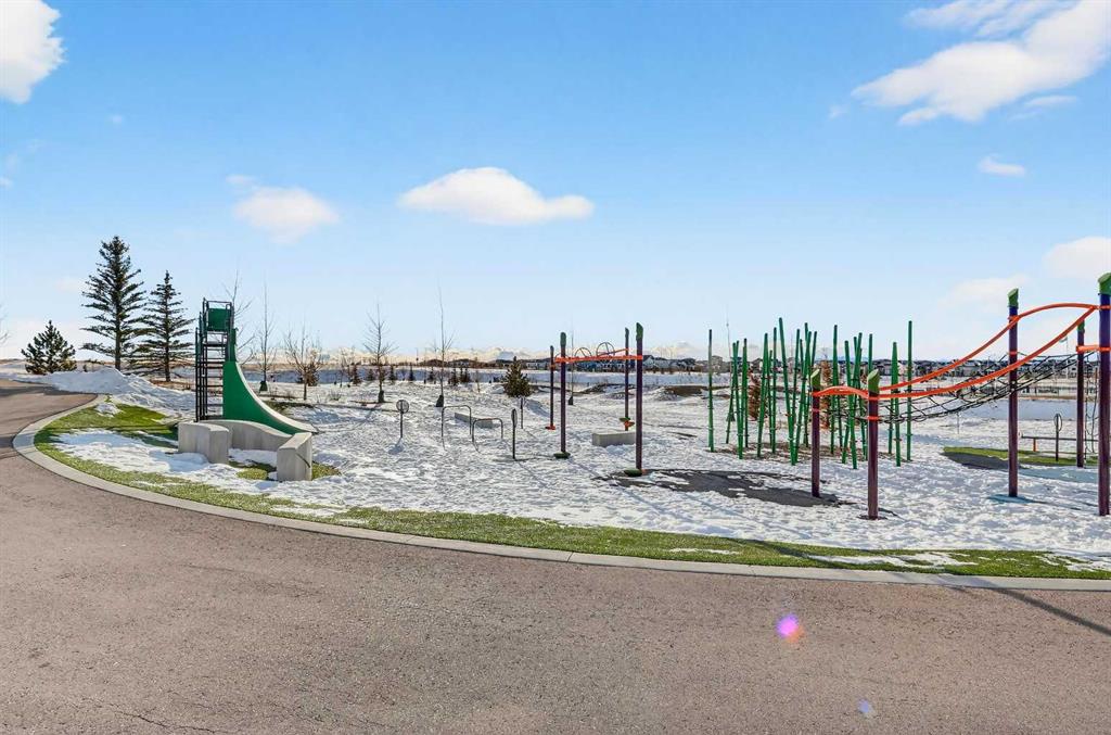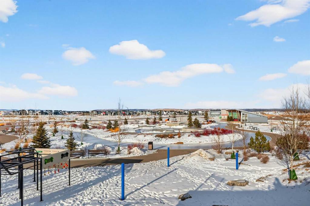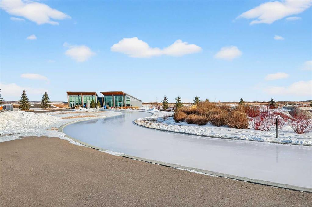 Experience the height of sophisticated living in this highly coveted luxury townhome, where a generous floor plan meets modern comfort and refined finishes. Proudly presented by StreetSide – this thoughtfully designed unit features 3 bedrooms, 2.5 bathrooms, and a front attached double car garage. The heart of the home is a spacious kitchen with a large central island, polished white quartz countertops, upgraded stainless steel appliances, and elegant sliding French patio doors that open to your covered deck area—ideal for both everyday living and entertaining. Light floods into the living room with ease through the large window, while luxury vinyl plank flooring flows throughout the main floor living areas, and carpeted stairs leading to the upper level and bedrooms provide extra warmth. The primary ensuite is a private sanctuary, complete with tile flooring, double sinks, a freestanding soaker tub, and an oversized tile-and-glass shower delivering spa-inspired comfort at home. The unfinished basement with roughed-in plumbing provides future potential for additional living space tailored to your needs. Professional landscaping and fencing complete your new home. Ideally located in the award-winning community of Harmony, residents enjoy Mickelson National Golf Course, private lake amenities, scenic walking and biking trails, and a wellness-focused lifestyle—just a shorty drive from Calgary city minutes and 45 minutes from the Rocky Mountains, where nature and convenience come together effortlessly. Please note Photos are renderings.