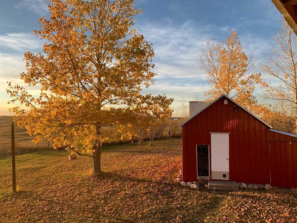 The grounds are landscaped and fenced with an electric gate at the entrance, featuring a private pond, garden area, and a dedicated fire pit space—perfect for evening gatherings under the open prairie sky. Additional outbuildings include a barn with loft, a storage shed, and two additional storage sheds, offering versatile space for storage, hobbies, or small livestock. Wheatland County has no animal restrictions, providing flexibility if you wish to keep chickens or other animals. This property offers the peaceful rural lifestyle buyers are looking for while remaining just minutes from Strathmore’s schools, shopping, and golf.