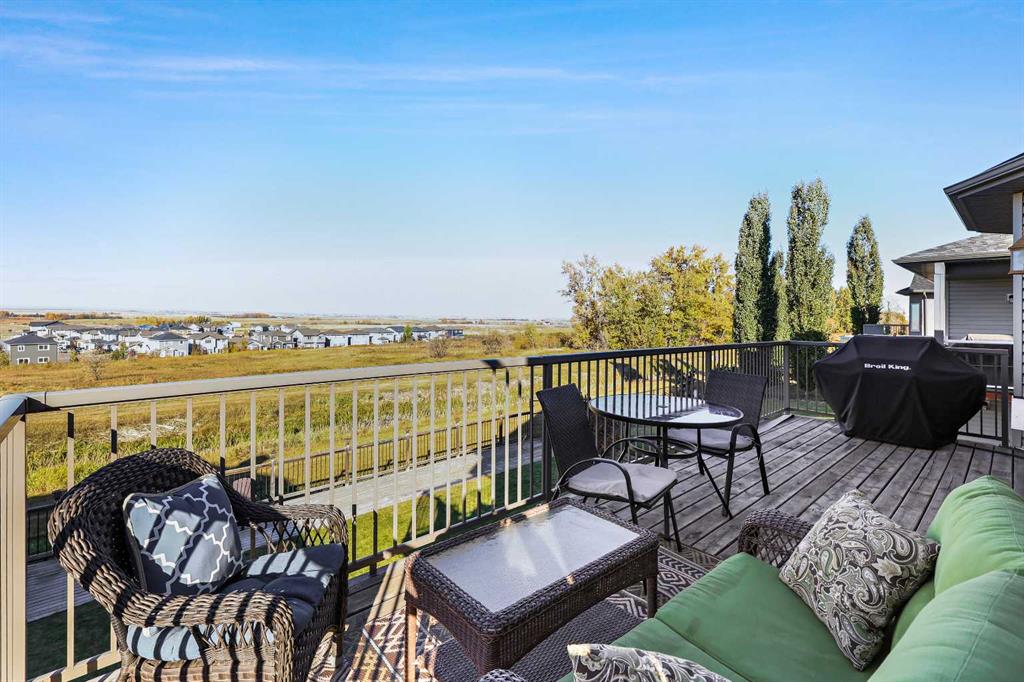 Featuring a triple-car garage with an east-facing driveway and plenty of parking space, this two-storey split design combines the luxury of bungalow-style living with the privacy of an upper level that includes two additional bedrooms and a 4-piece bathroom — ideal for family or guests. The main floor is open concept, designed for both everyday living and entertaining. The kitchen was beautifully renovated in 2022, showcasing quartz countertops, a gas stove, a large island, and stunning west-facing views. A cozy gas fireplace adds warmth and ambiance to the living area, creating the perfect space to relax and unwind. The primary bedroom is a true retreat, featuring a spacious walk-in closet, a 5-piece ensuite, and gorgeous west-facing views of the surrounding landscape. The fully finished walkout basement offers incredible versatility with a bedroom, 3-piece bathroom, a den, a bar area with plumbing ready for a wet bar, a large family room, and a spacious utility room with built-in storage. Step out to your private walkout patio, already wired for a future hot tub — the perfect spot to unwind at the end of the day. The landscaped yard includes underground sprinklers and a storage shed, making outdoor living both beautiful and easy to maintain. Living in Hillview means enjoying space, privacy, and sweeping views — all in a welcoming community. Contact your agent today to schedule a private tour of this beautiful home!