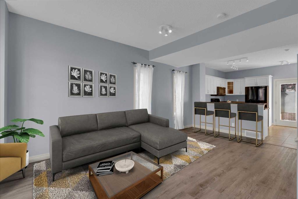 END UNIT! 3 bedrooms, 1.5 bathrooms, 2 PARKING STALLS & LOW FEES! With freshly cleaned carpets, a new coat of paint, a perfect layout and a cute backyard this home has it all! Stepping inside the front entrance you are welcomed by a bright and airy open-concept layout with modern finishings/colours, 9 foot ceilings and huge windows that fill the home with natural light throughout the day. The living area has plenty of space for big comfy furniture to watch movies or relax in front of the fireplace. The U-shaped kitchen features ample counter space and seating for guests, plenty of cabinetry and a new dishwasher. Adjacent to the kitchen is a dining area with a lovely window that overlooks the south-facing backyard, this nook is the coziest spot for morning coffee! This area also leads to a fenced backyard with a large mature tree that provides privacy to enjoy summer evenings on the (concrete) patio. The main floor is completed with a 2 piece powder room and a coat closet at the front door. On the south side of the second level you will find a huge primary bedroom with an awesome flex area that would make a perfect reading nook or glam station. This private retreat overlooks the backyard, boasts a big walk-in closet, and features a cheater ensuite door to a four piece bathroom with deep soaker tub. The second level is completed by two more bedrooms on the north side of the home (nicely separated from the primary bedroom) and large linen closet. The basement houses a newer washer and dryer, and features a big window and bathroom rough-in for future development. Right outside the door are two parking stalls with plug-in and plenty of visitor parking. This home is a 5 minute walk to the elementary school and a 3 minute drive to all amenities such as health services, rec center/pool, arena, groceries, hardware stores and retail. BONUS: hot water tank replaced in 2024.